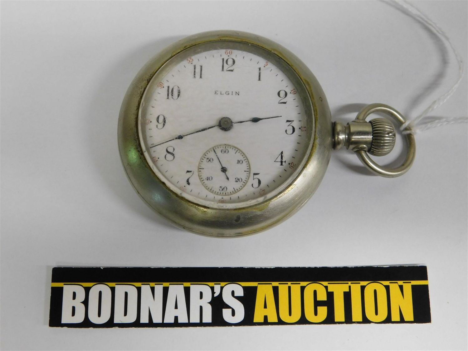 Elgin Silveroid Pocket Watch with Philadelphia Watch Company Screwback Case. Has faded image of Train on back. Case #861752. Stem Winding with Lever Set – In Running Condition. Seconds Bit at 6 o’clock. Stem at 3 o’clock. Open Face. #13224429-7J. Measures 2.25" diameter. All items must be paid within 24 hours of the sale. All items are shipped USPS or UPS and will be billed separately. A $12 handling fee is added to the shipping price per lot if shipped in house. Some items or large quantity of purchases will be packed and shipped via the UPS store. Local pickups are at our South Brunswick location on Friday, Saturday and Monday ONLY! All pickups are by appointment only. Any condition issues will be listed in the description. Please read the terms for full information.