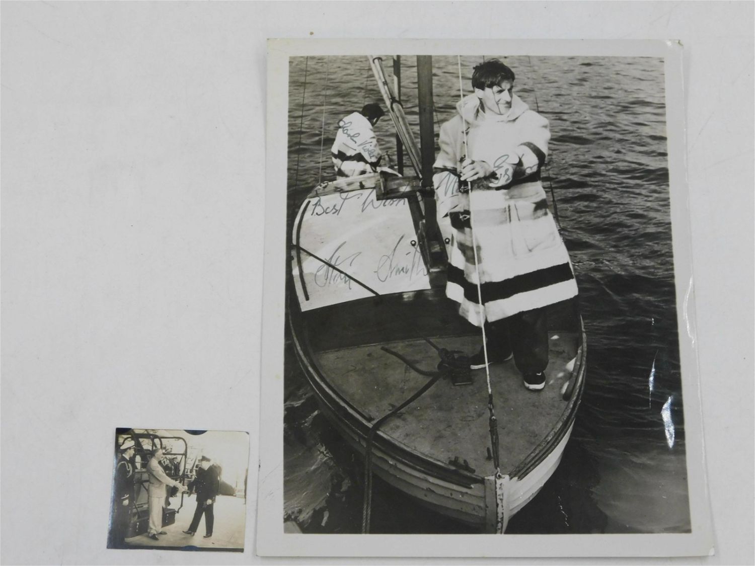 2 vintage photos. The first is of a 20 foot sailing boat named Nova Espero. In 1951 Stanley Smith and Charles Violet left the Isle of Wright with British goods, they arrived in NY with the goods. Photo is from the British Information Services. The second photo is Winston Churchill greeting President Roosevelt in August of 1941 on a ship in Newfoundland to discuss the war, post war, as well as the Atlantic Charter which would become the founding principles of the Untied Nations. Unsure who the photo was taken by, or if it is an enlarged image of the original film reel, but it is a fantastic find! All invoices must be paid within 24 hours of the sale. All items are shipped USPS or UPS and will be billed separately. A $12 handling fee is added to the shipping price per lot if shipped in house. Some items or large quantity of purchases will be packed and shipped via the UPS store. Local pickups are at our South Brunswick location on Friday, Saturday and Monday ONLY! All pickups are by appointment only. Any condition issues will be listed in the description. Please read the terms for full information.