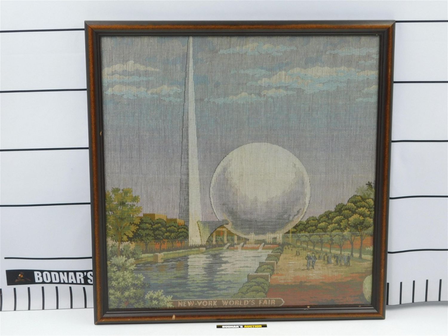 Absolutely beautiful 1939 New York World’s Fair needlepoint depicting the Trylon and Perisphere from the park. Is framed and behind glass. The frame measures approx. 20 3/4" tall x 20 1/4" wide. All invoices must be paid within 24 hours of the sale. All items are shipped USPS or UPS and will be billed separately. A $12 handling fee is added to the shipping price per lot if shipped in house. Some items or large quantity of purchases will be packed and shipped via the UPS store. Local pickups are at our South Brunswick location on Friday, Saturday and Monday ONLY! All pickups are by appointment only. Any condition issues will be listed in the description. Please read the terms for full information.
