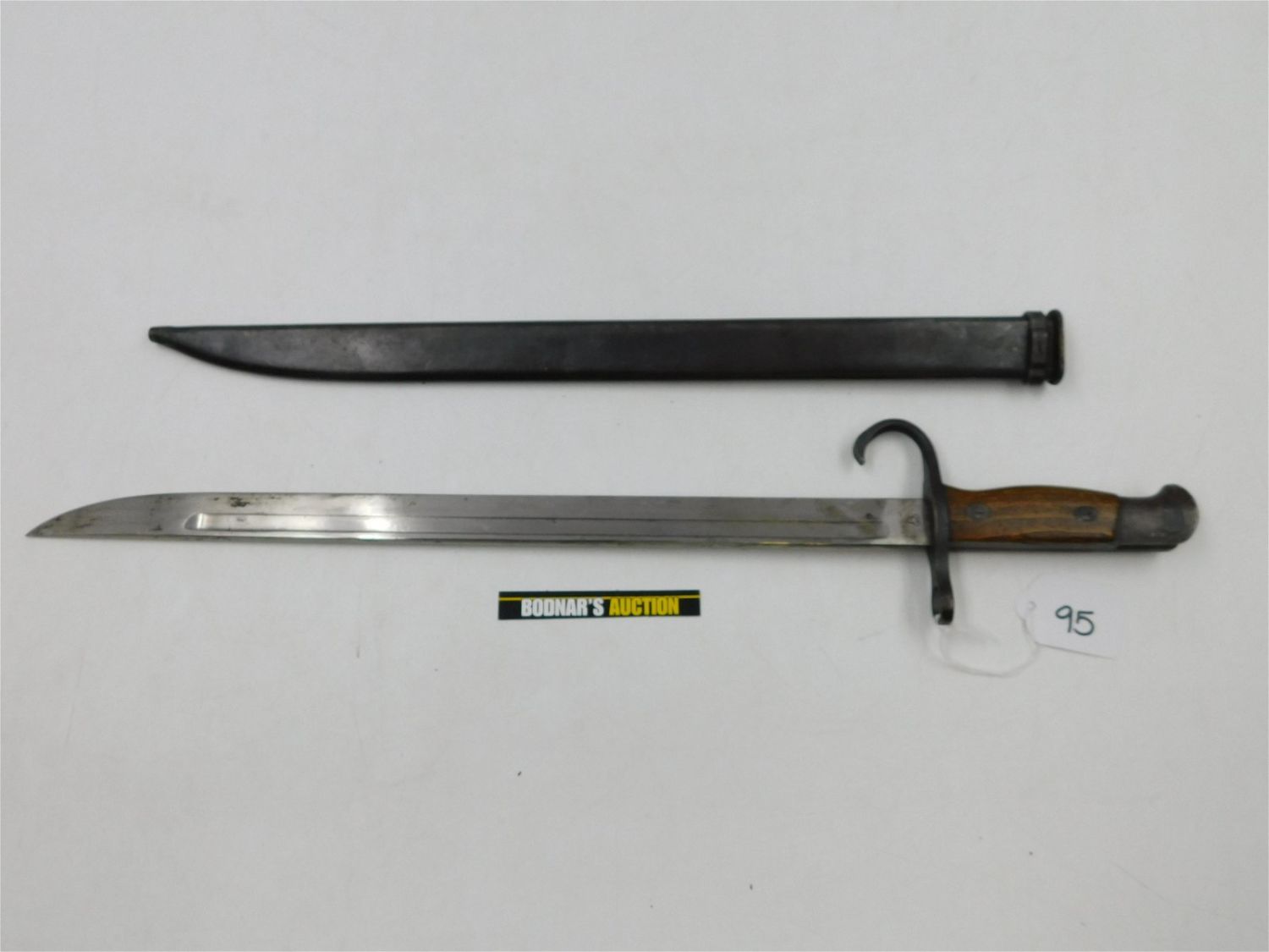 Bayonet with scabbard. Appears to be WWI, but is unidentified. Has one marking on the blade and 15512 on the handle but no other identifying markers. Measures approx. 20" long. All invoices must be paid within 24 hours of the sale. All items are shipped USPS or UPS and will be billed separately. A $12 handling fee is added to the shipping price per lot if shipped in house. Some items or large quantity of purchases will be packed and shipped via the UPS store. Local pickups are at our South Brunswick location on Friday, Saturday and Monday ONLY! All pickups are by appointment only. Any condition issues will be listed in the description. Please read the terms for full information.