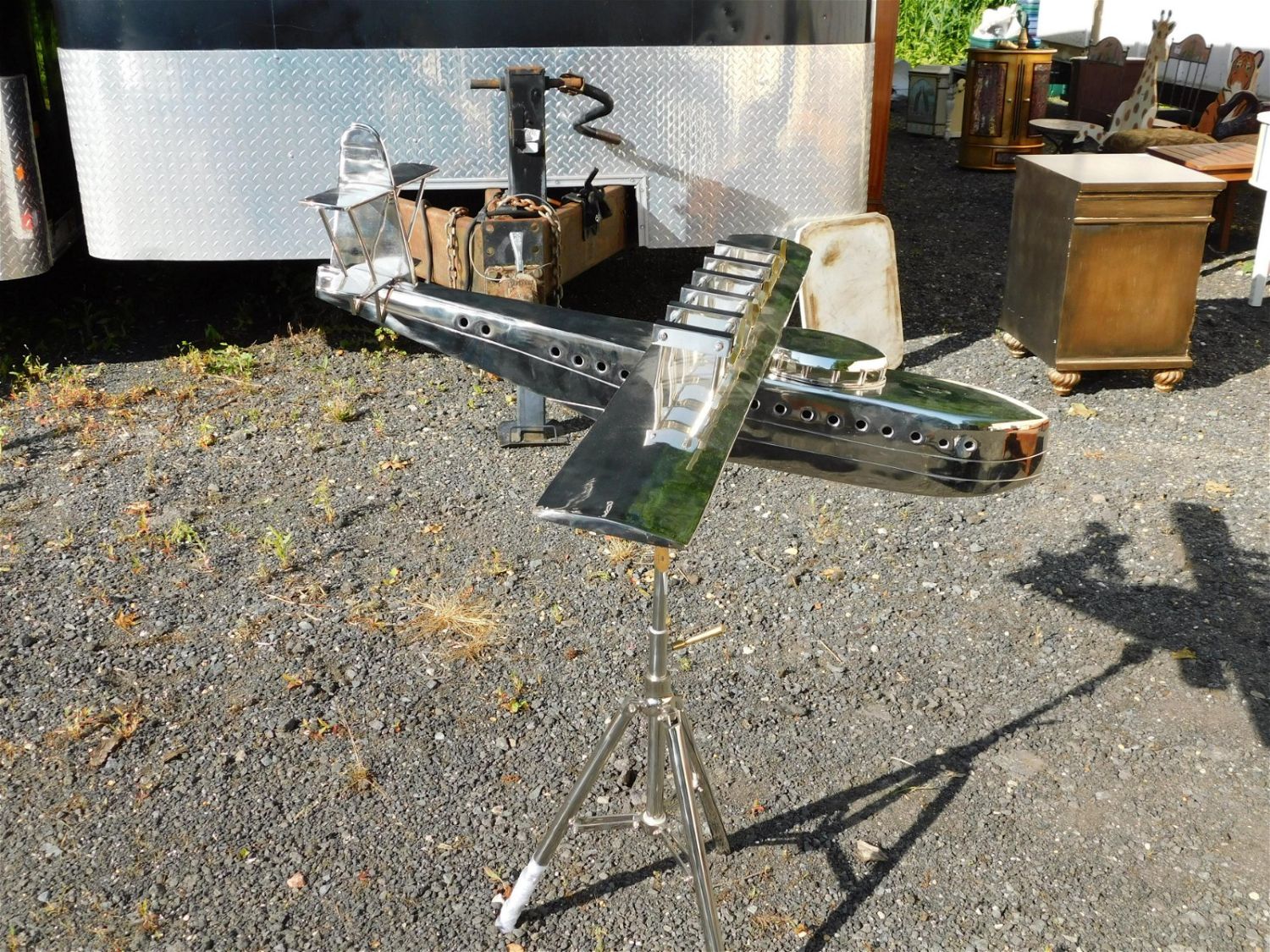 Art Deco Style Chrome Airplane on Stand. Made by Signature. Measures on Stand 49" tall x 42" long x 46" wide. Please read the terms and conditions. This sale will be broadcast live on sale day with full descriptions of each lot being sold. All items MUST be paid for within 24 HOURS of the sale. Anyone who has not paid within 24 hours will have a dispute opened against them and will not be able to bid at future sales. We use LIVE Ship from Liveauctioneers for all shipping. Liveauctioneers will pick up, pack and ship all items in this sale. Use the Quote button on this page. They wil include this charge in your invoice. If you are picking your items up you must contact us NO LATER than 24 hours after the sale to schedule an appointment to pick up. Pick up dates are Thursday, Friday, Saturday, and Monday ONLY, and are BY APPOINTMENT ONLY!! After Monday, if you have not picked up your items, they will be disposed of.