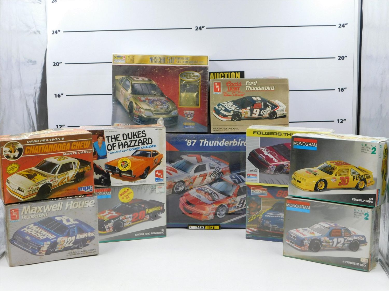 Group Lot of NASCAR Model Kits including AMT, Monogram, and Revell. Includes Dukes of Hazard General Lee Factory Sealed. Includes a total of 8 Kits that are factory sealed. David Pearson Chattanooga is Autographed in pen on the box. Please read the terms and conditions. This sale will be broadcast live on sale day with full descriptions of each lot being sold. All items MUST be paid for within 24 HOURS of the sale. Anyone who has not paid within 24 hours will have a dispute opened against them and will not be able to bid at future sales. We use LIVE Ship from Liveauctioneers for all shipping. Liveauctioneers will pick up, pack and ship all items in this sale. Use the Quote button on this page. They wil include this charge in your invoice. If you are picking your items up you must contact us NO LATER than 24 hours after the sale to schedule an appointment to pick up. Pick up dates are Thursday, Friday, Saturday, and Monday ONLY, and are BY APPOINTMENT ONLY!! After Monday, if you have not picked up your items, they will be disposed of.