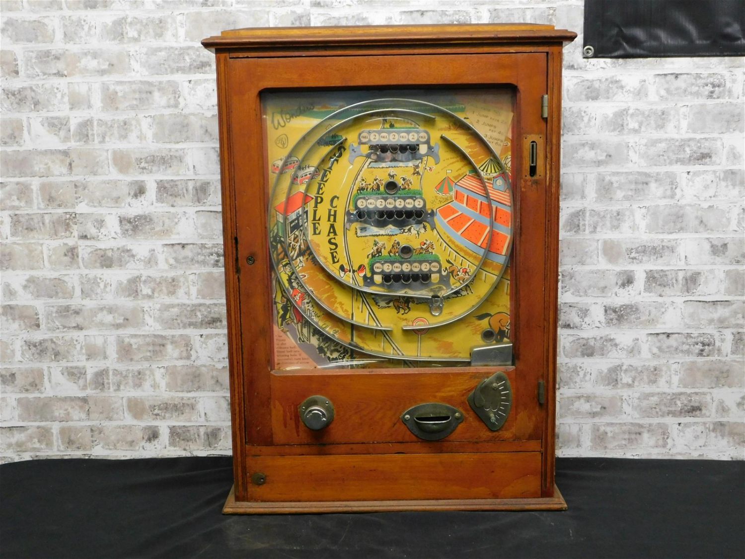 Antique Penny Steeplechase Wall Hanging/Tabletop Pachinko Style Machine. In Non-Working Order. Measures 35" tall x 24" wide x 6.5" deep. Please read the terms and conditions. This sale will be broadcast live on sale day with full descriptions of each lot being sold. All items MUST be paid for within 24 HOURS of the sale. Anyone who has not paid within 24 hours will have a dispute opened against them and will not be able to bid at future sales. We use LIVE Ship from Liveauctioneers for all shipping. Liveauctioneers will pick up, pack and ship all items in this sale. Use the Quote button on this page. They wil include this charge in your invoice. If you are picking your items up you must contact us NO LATER than 24 hours after the sale to schedule an appointment to pick up. Pick up dates are Thursday, Friday, Saturday, and Monday ONLY, and are BY APPOINTMENT ONLY!! After Monday, if you have not picked up your items, they will be disposed of.
