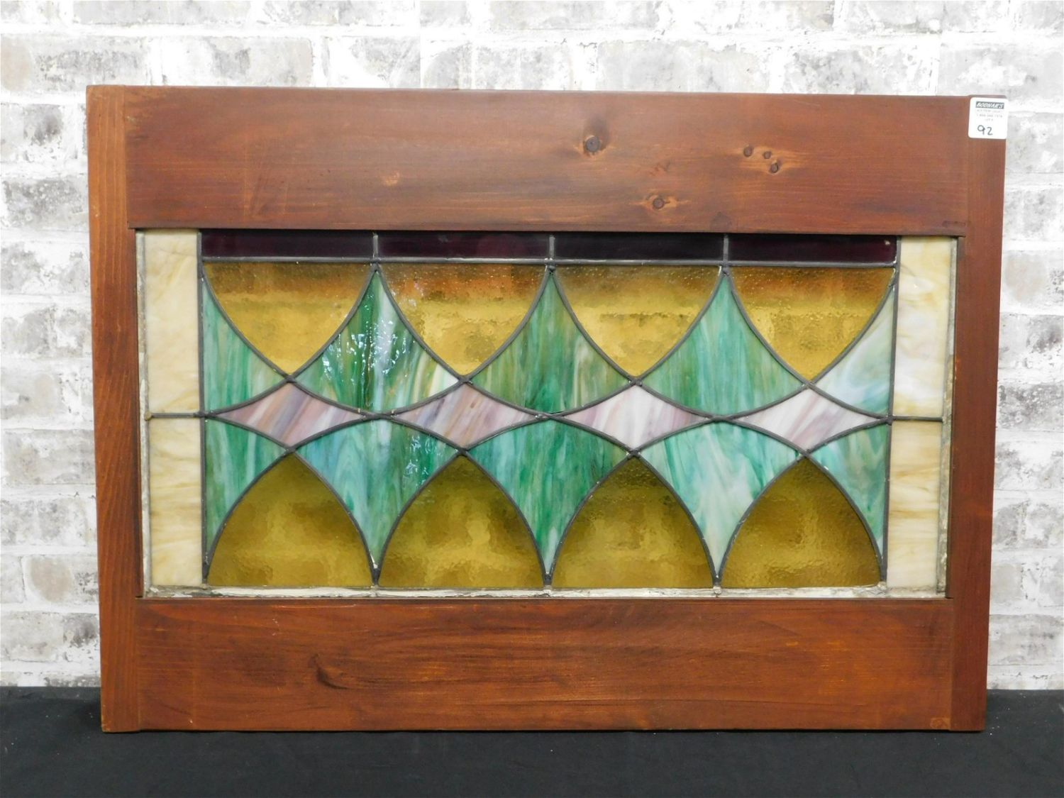 Stained Glass Window. Measures 25" tall x 35" wide. Please read the terms and conditions. This sale will be broadcast live on sale day with full descriptions of each lot being sold. All items MUST be paid for within 24 HOURS of the sale. Anyone who has not paid within 24 hours will have a dispute opened against them and will not be able to bid at future sales. We use LIVE Ship from Liveauctioneers for all shipping. Liveauctioneers will pick up, pack and ship all items in this sale. Use the Quote button on this page. They wil include this charge in your invoice. If you are picking your items up you must contact us NO LATER than 24 hours after the sale to schedule an appointment to pick up. Pick up dates are Thursday, Friday, Saturday, and Monday ONLY, and are BY APPOINTMENT ONLY!! After Monday, if you have not picked up your items, they will be disposed of.