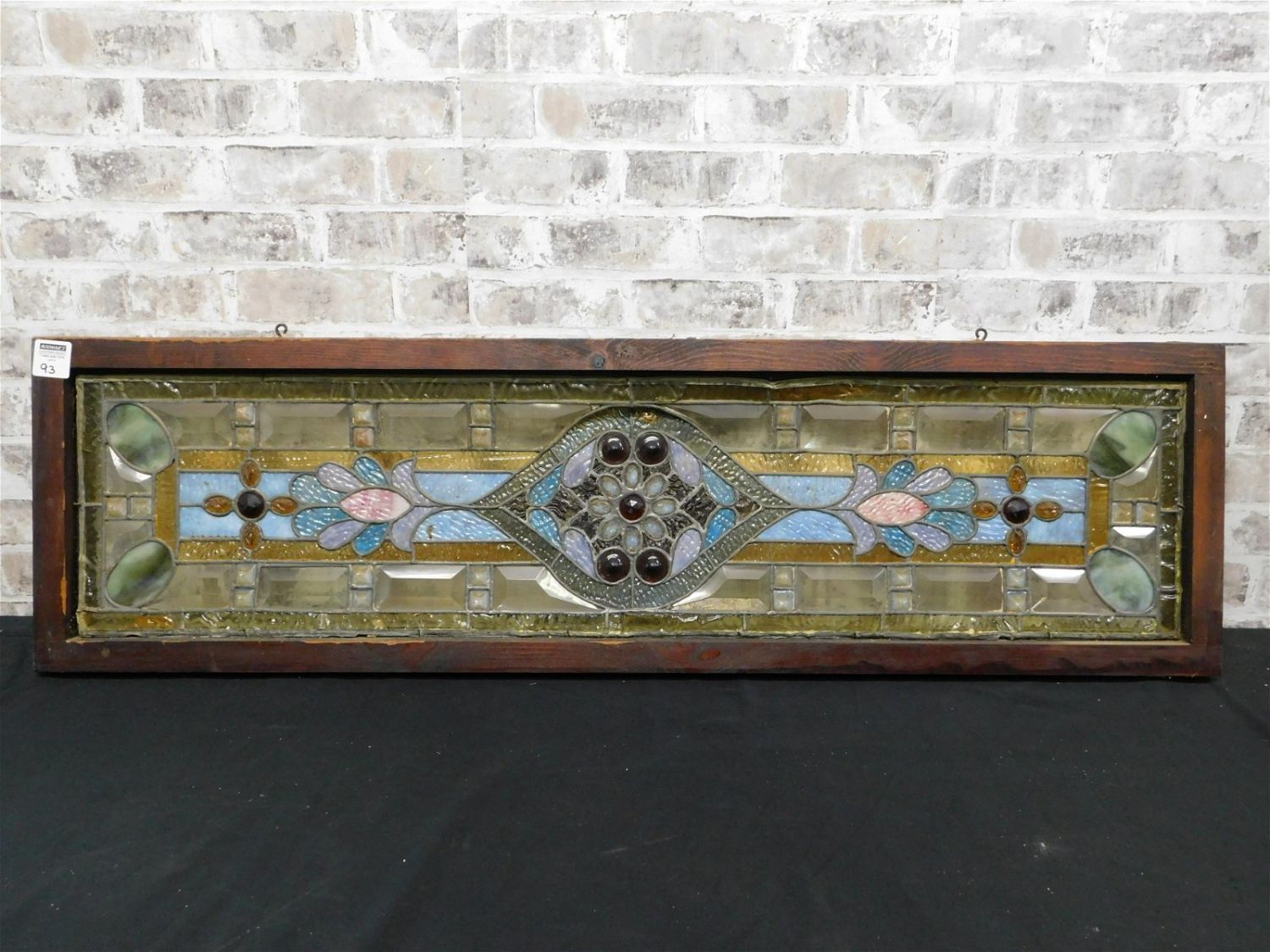 Stained Glass Hanging Panel with Jeweled Glass Decoration. Used to hang over door. Multiple Chips throughout. Glass is coming loose in one area. Measures 14" tall x 50" wide. Please read the terms and conditions. This sale will be broadcast live on sale day with full descriptions of each lot being sold. All items MUST be paid for within 24 HOURS of the sale. Anyone who has not paid within 24 hours will have a dispute opened against them and will not be able to bid at future sales. We use LIVE Ship from Liveauctioneers for all shipping. Liveauctioneers will pick up, pack and ship all items in this sale. Use the Quote button on this page. They wil include this charge in your invoice. If you are picking your items up you must contact us NO LATER than 24 hours after the sale to schedule an appointment to pick up. Pick up dates are Thursday, Friday, Saturday, and Monday ONLY, and are BY APPOINTMENT ONLY!! After Monday, if you have not picked up your items, they will be disposed of.