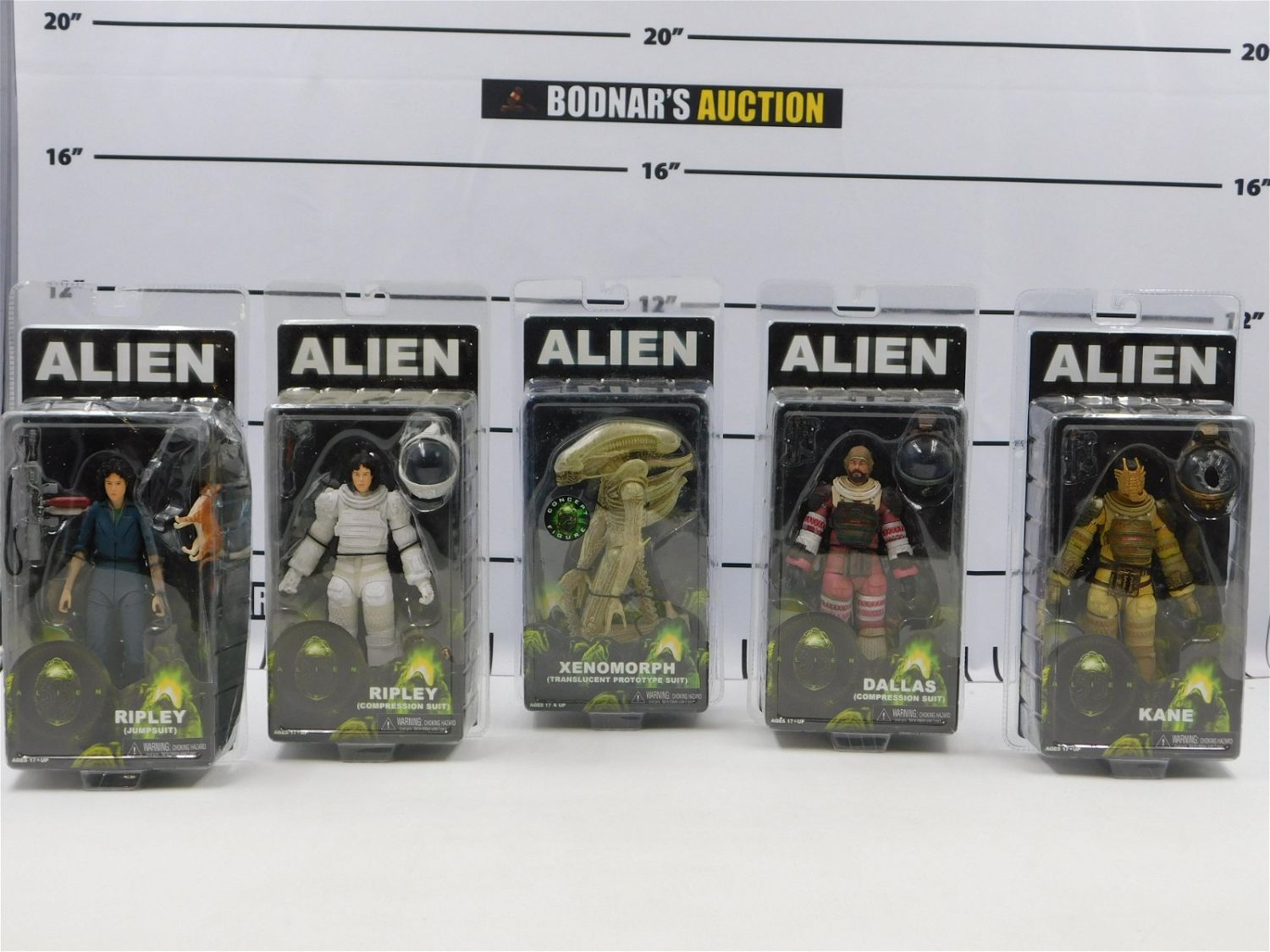 Lot of 5 NECA Alien Action Figures. Includes Xenomorph (Translucent Prototype Suit), Dallas (Compression Suit), Ripley (Jumpsuit) – Dented Package, Ripley (Compression Suit), and Kane. 2014. All invoices must be paid within 24 hours of the sale. All items are shipped USPS or UPS and will be billed separately. A $10 handling fee is added to the shipping price per lot. Local pickups are in our South Brunswick location on Friday, Saturday and Monday ONLY! All pickups are by appointment only. Any condition issues will be listed in the description. Please read the terms for full information.