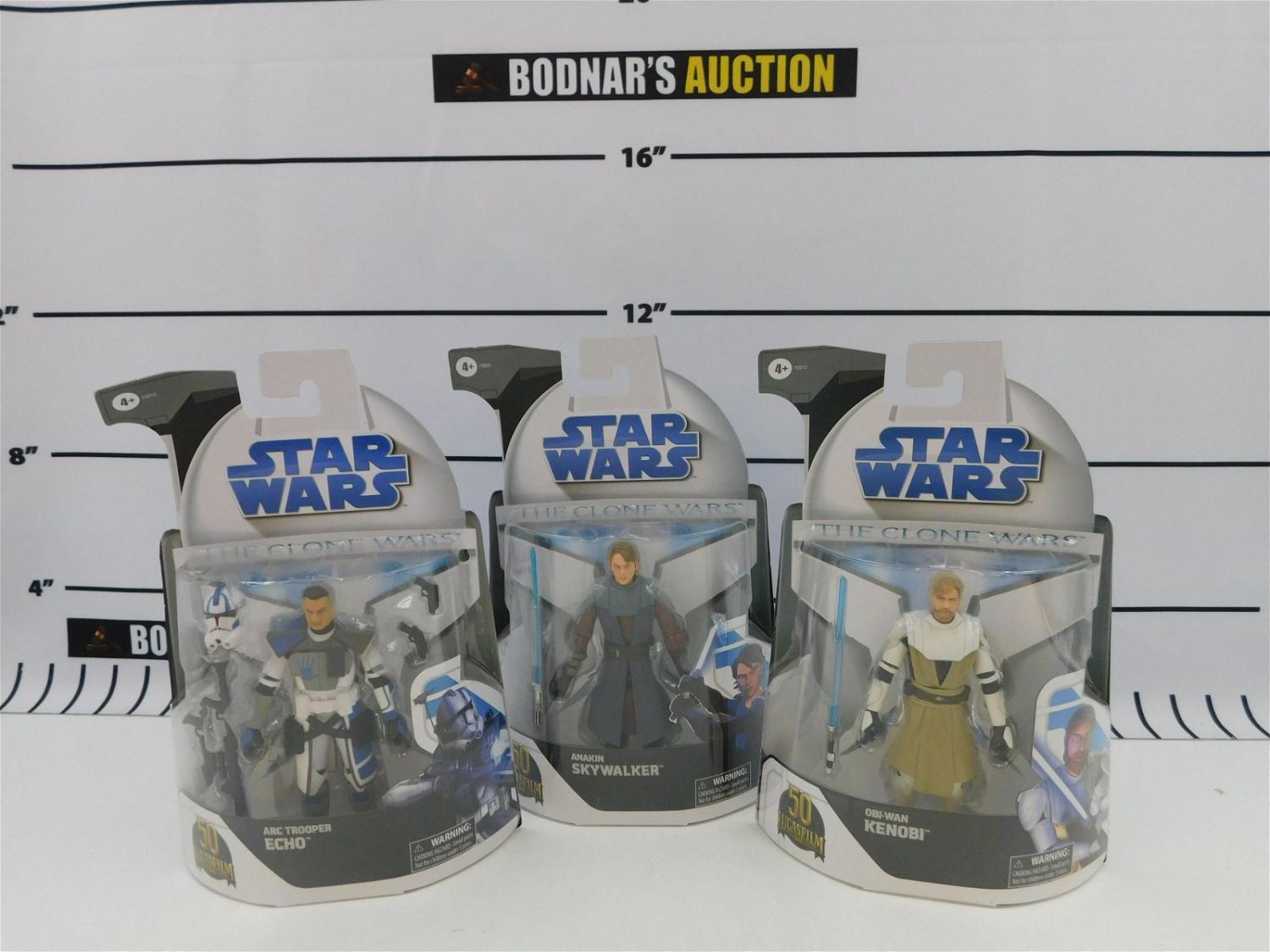 Lot of 3 Star Wars Clone Wars Action Figures including Arc Trooper Echo, Obi-Wan Kenobi, and Anakin Skywalker. All invoices must be paid within 24 hours of the sale. All items are shipped USPS or UPS and will be billed separately. A $10 handling fee is added to the shipping price per lot. Local pickups are in our South Brunswick location on Friday, Saturday and Monday ONLY! All pickups are by appointment only. Any condition issues will be listed in the description. Please read the terms for full information.