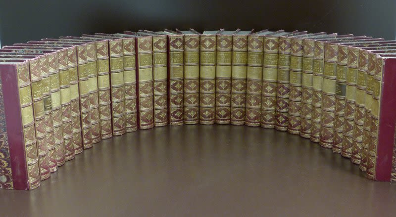 Dickens, C., Works of, Chapman and Hall nd. quarter bound red calf, raised bands, six spine panels, blind tooling, marbled boards and end-papers, very handsome set (30 volumes).