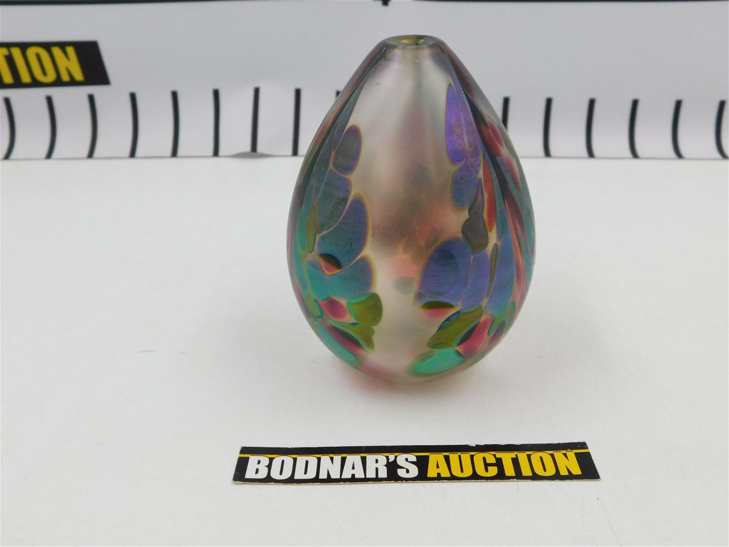 Art Glass Perfume. Missing Stopper. Appears to be signed Mystic Studios – 1993. Measures approx. 4.5" tall x 3.25" diameter. All invoices must be paid within 24 hours of the sale. All items are shipped with Liveauctioneers Live Shipping. Local pickups are in our South Brunswick location on Friday, Saturday and Monday ONLY! All pickups are by appointment only. Any condition issues will be listed in the description. Please read the terms for full information.