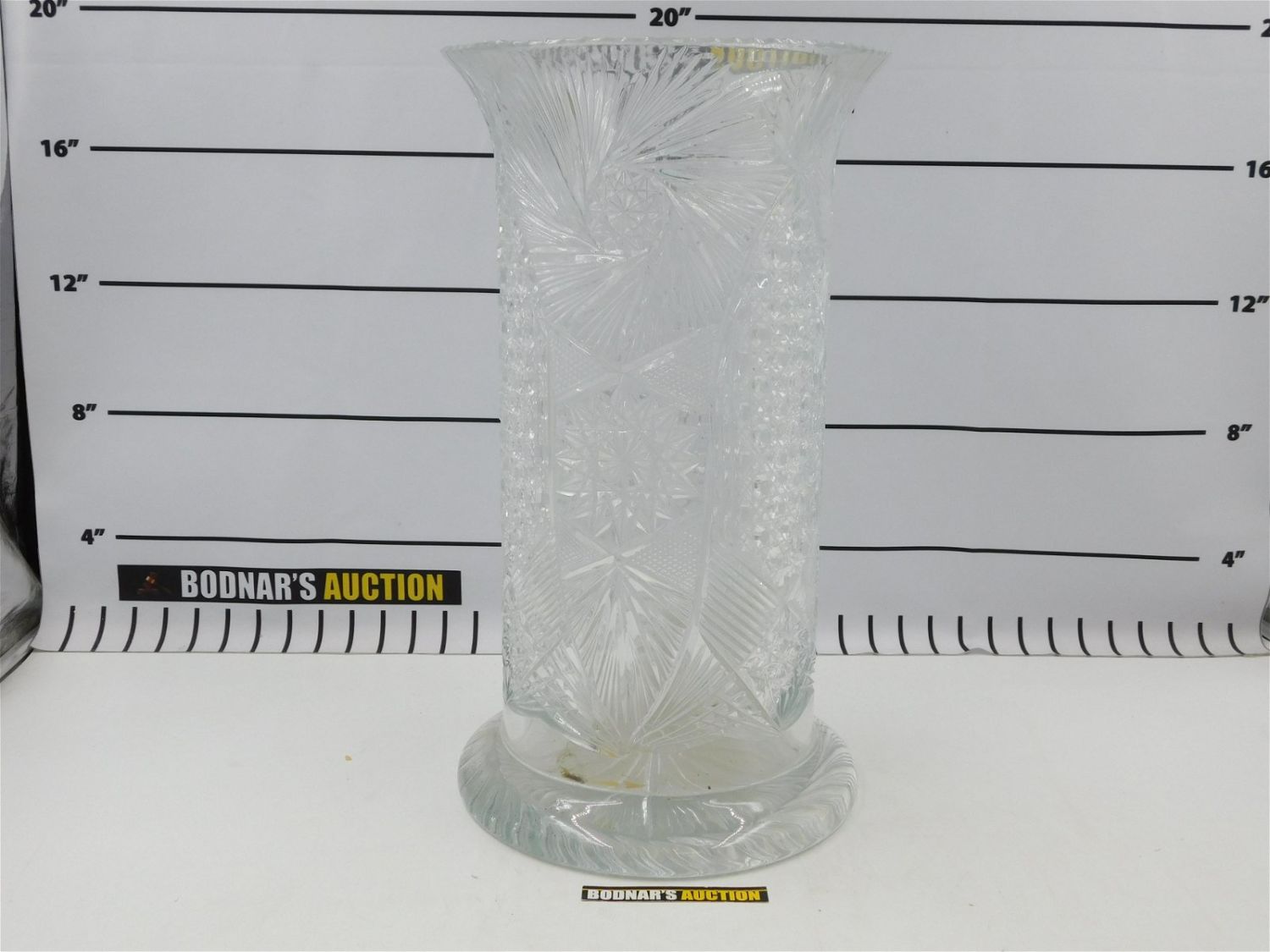 Cut Glass Umbrella Stand. Measures approx. 18" tall x 10" diameter. All invoices must be paid within 24 hours of the sale. All items are shipped with Liveauctioneers Live Shipping. Local pickups are in our South Brunswick location on Friday, Saturday and Monday ONLY! All pickups are by appointment only. Any condition issues will be listed in the description. Please read the terms for full information.