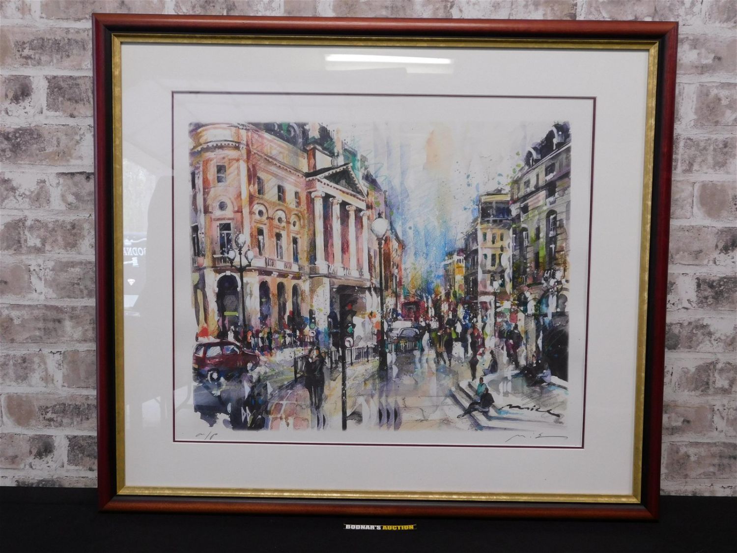 Framed lithograph by Misha Lenn depicting a street scene. Signed lower right Misha numbered AP. Frame measures approx. 27.5" tall x 31.5" wide. Please read the terms and conditions. This sale will be broadcast live on sale day with full descriptions of each lot being sold. All items MUST be paid for within 24 HOURS of the sale. Anyone who has not paid within 24 hours will have a dispute opened against them and will not be able to bid at future sales. All items in this sale are local pick up only, or shipping via Liveauctioneers Live Ship. If you are picking your items up you must contact us NO LATER than 24 hours after the sale to schedule an appointment to pick up. Pick up dates are Thursday, Friday, Saturday, and Monday ONLY, and are BY APPOINTMENT ONLY!! After Monday, if you have not picked up your items, they will be disposed of.