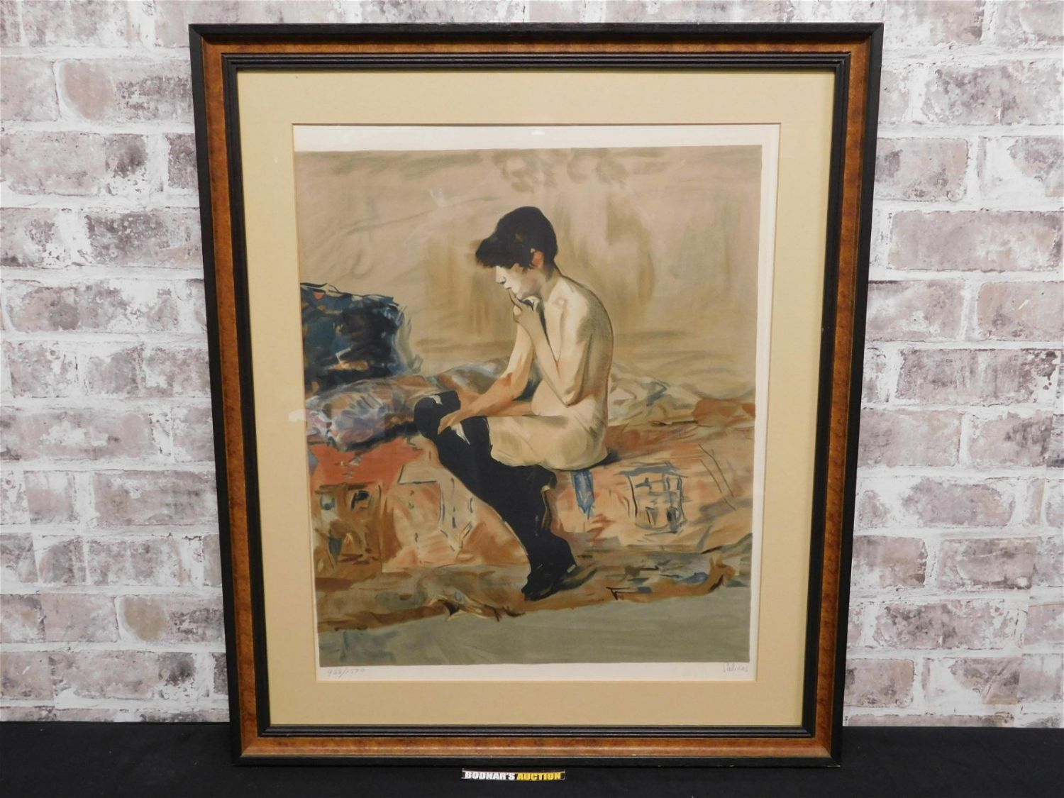 Framed serigraph/lithograph by Laurent Marcel Salinas (1913-2010) depicting a woman on bed. Signed lower right Salinas and numbered 968 out of 1500. Has a water seal. Frame measures approx. 28" tall x 24" wide. Please read the terms and conditions. This sale will be broadcast live on sale day with full descriptions of each lot being sold. All items MUST be paid for within 24 HOURS of the sale. Anyone who has not paid within 24 hours will have a dispute opened against them and will not be able to bid at future sales. All items in this sale are local pick up only, or shipping via Liveauctioneers Live Ship. If you are picking your items up you must contact us NO LATER than 24 hours after the sale to schedule an appointment to pick up. Pick up dates are Thursday, Friday, Saturday, and Monday ONLY, and are BY APPOINTMENT ONLY!! After Monday, if you have not picked up your items, they will be disposed of.