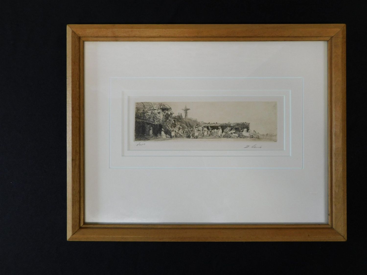Framed etching depicting the beach and boardwalk possibly Coney Island, NY. . Signed lower right undetermined but appears to be D Lemno. Numbered 1 out of 250. Frame measures approx. 10.5" tall x 13.5" wide. Please read the terms and conditions. This sale will be broadcast live on sale day with full descriptions of each lot being sold. All items MUST be paid for within 24 HOURS of the sale. Anyone who has not paid within 24 hours will have a dispute opened against them and will not be able to bid at future sales. All items in this sale are local pick up only, or shipping via Liveauctioneers Live Ship. If you are picking your items up you must contact us NO LATER than 24 hours after the sale to schedule an appointment to pick up. Pick up dates are Thursday, Friday, Saturday, and Monday ONLY, and are BY APPOINTMENT ONLY!! After Monday, if you have not picked up your items, they will be disposed of.