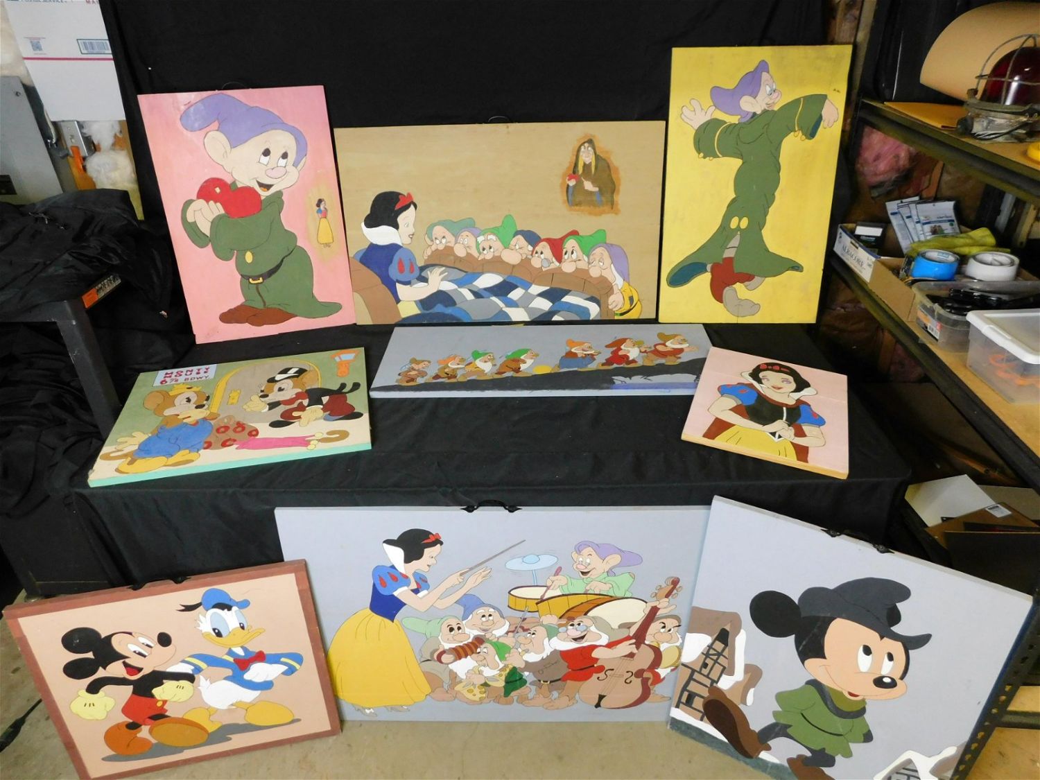 Lot of 9 Homemade Handpainted Disney Art on Wood. Most Double Sided. Includes Characters such as Mickey and Friends, Snow White and the Seven Dwarfs, The Little Pigs, and More. Most have handles. Measures between 17" x 14" – 27" x 37" wide. Please read the terms and conditions. This sale will be broadcast live on sale day with full descriptions of each lot being sold. All item, s MUST be paid for within 24 HOURS of the sale. Anyone who has not paid within 24 hours will have a dispute opened against them and will not be able to bid at future sales. All items in this sale are local pick up only, or shipping via UPS Store in New Brunswick, NJ .. If you need your items shipped, we will send your items to the UPS Store in New Brunswick, NJ . They will pack it and ship it to you and you will pay them separately and directly. Please call them to get a quote before bidding. Their phone number is 732-354-4284. If you are picking your items up you must contact us NO LATER than 24 hours after the sale to schedule an appointment to pick up. Pick up dates are Thursday, Friday, Saturday, and Monday ONLY, and are BY APPOINTMENT ONLY!! After Monday, if you have not picked up your items, they will be disposed of.