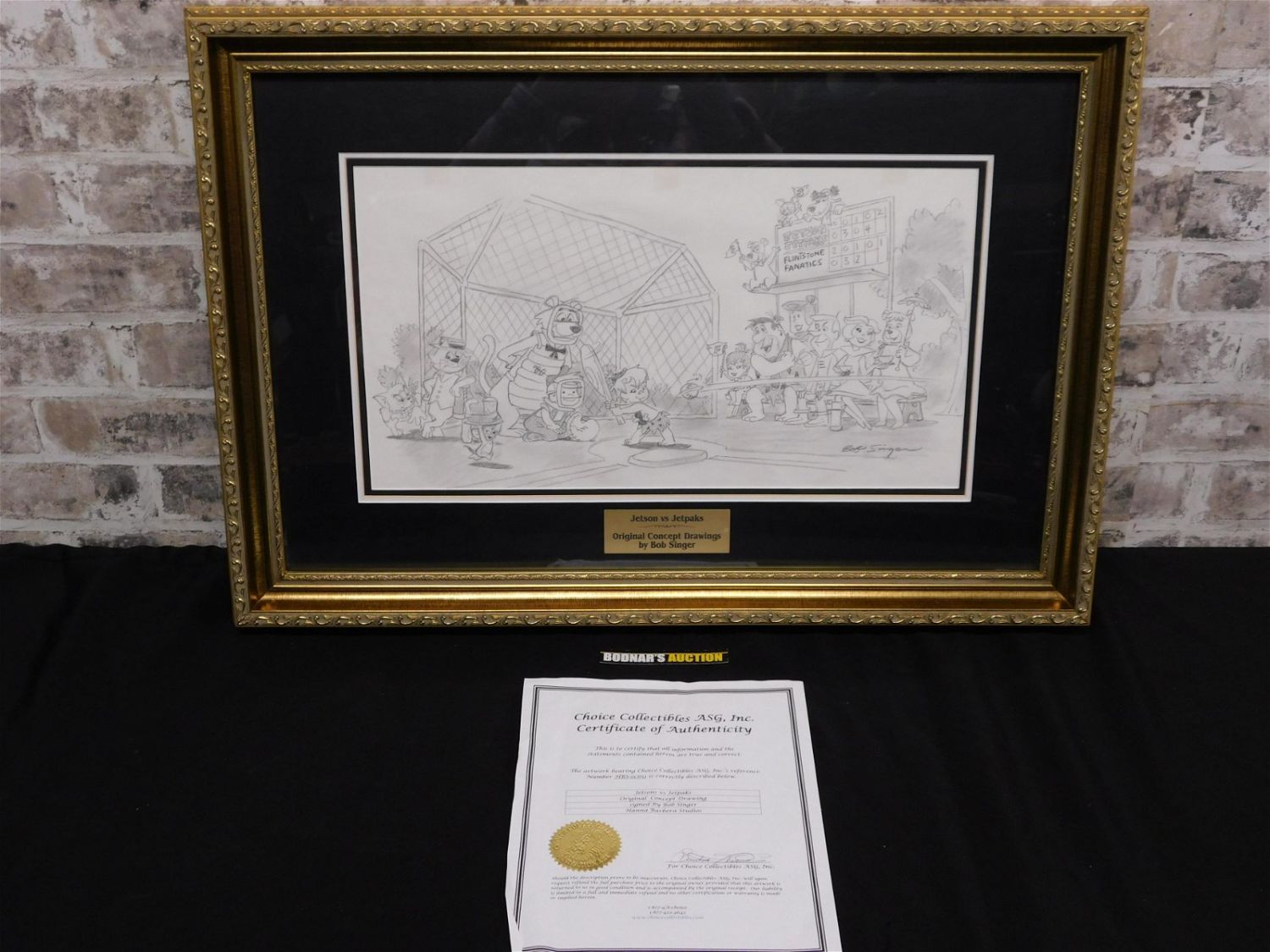 "Jetsons vs Jetpacks" Original Concept Drawing – Signed by Bob Singer – Hanna Barbera Studios. Comes with COA. Professionally Framed and Matted. Measures 27.5" wide x 19.25" tall. Please read the terms and conditions. This sale will be broadcast live on sale day with full descriptions of each lot being sold. All items MUST be paid for within 24 HOURS of the sale. Anyone who has not paid within 24 hours will have a dispute opened against them and will not be able to bid at future sales. All items in this sale are local pick up only, or shipping via UPS Store in New Brunswick, NJ .. If you need your items shipped, we will send your items to the UPS Store in New Brunswick, NJ . They will pack it and ship it to you and you will pay them separately and directly. Please call them to get a quote before bidding. Their phone number is 732-354-4284. If you are picking your items up you must contact us NO LATER than 24 hours after the sale to schedule an appointment to pick up. Pick up dates are Thursday, Friday, Saturday, and Monday ONLY, and are BY APPOINTMENT ONLY!! After Monday, if you have not picked up your items, they will be disposed of.
