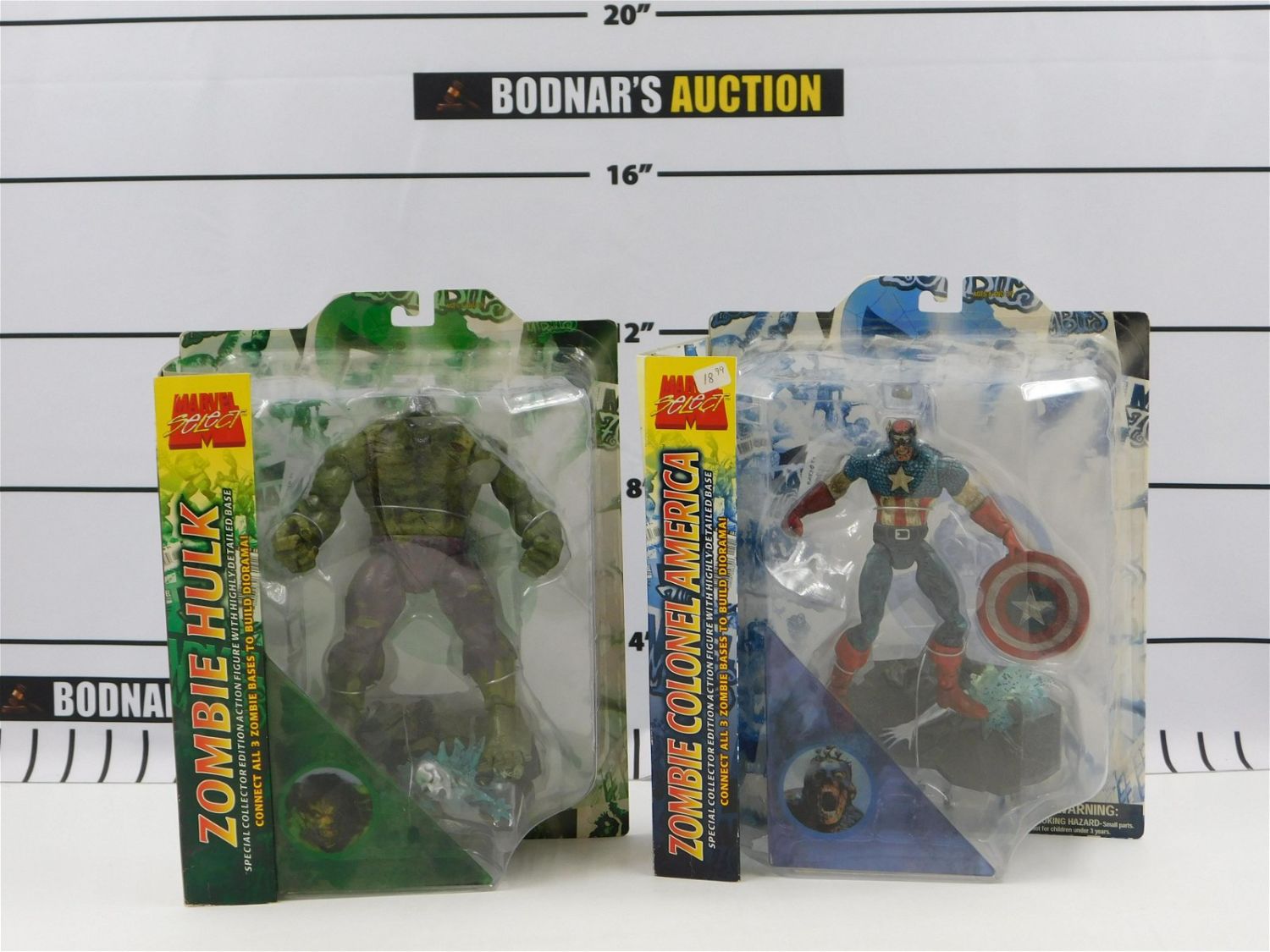 Lot of 2 Marvel Select Action Figures including Zombie Colonel America and Zombie Hulk. Diamond Select 2007. All items are shipped USPS or UPS and will be billed separately. A $10 handling fee is added to the shipping price per lot. Local pickups are in our South Brunswick location on Friday, Saturday and Monday ONLY! All pickups are by appointment only. Any condition issues will be listed in the description. Please read the terms for full information.