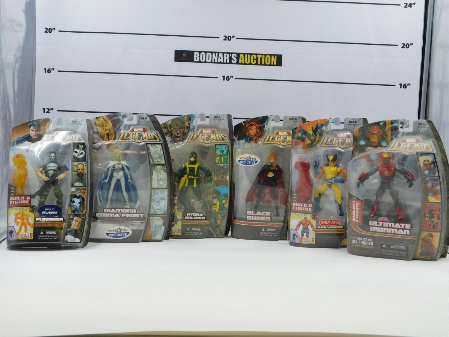 Lot of 6 Marvel Legends Action Figures including Black Queen – TRU Exclusive, Diamond Emma Frost – TRU Exclusive, Punisher – BAF Nemesis Series – Walmart Exclusive, Ultimate Ironman – BAF Annihilus, Wolverine – BAF Red Hulk – Target Exclusive, and Hydra Soldier – BAF Queen Brod Series. Hasbro 2006 – 2007. All items are shipped USPS or UPS and will be billed separately. A $10 handling fee is added to the shipping price per lot. Local pickups are in our South Brunswick location on Friday, Saturday and Monday ONLY! All pickups are by appointment only. Any condition issues will be listed in the description. Please read the terms for full information.