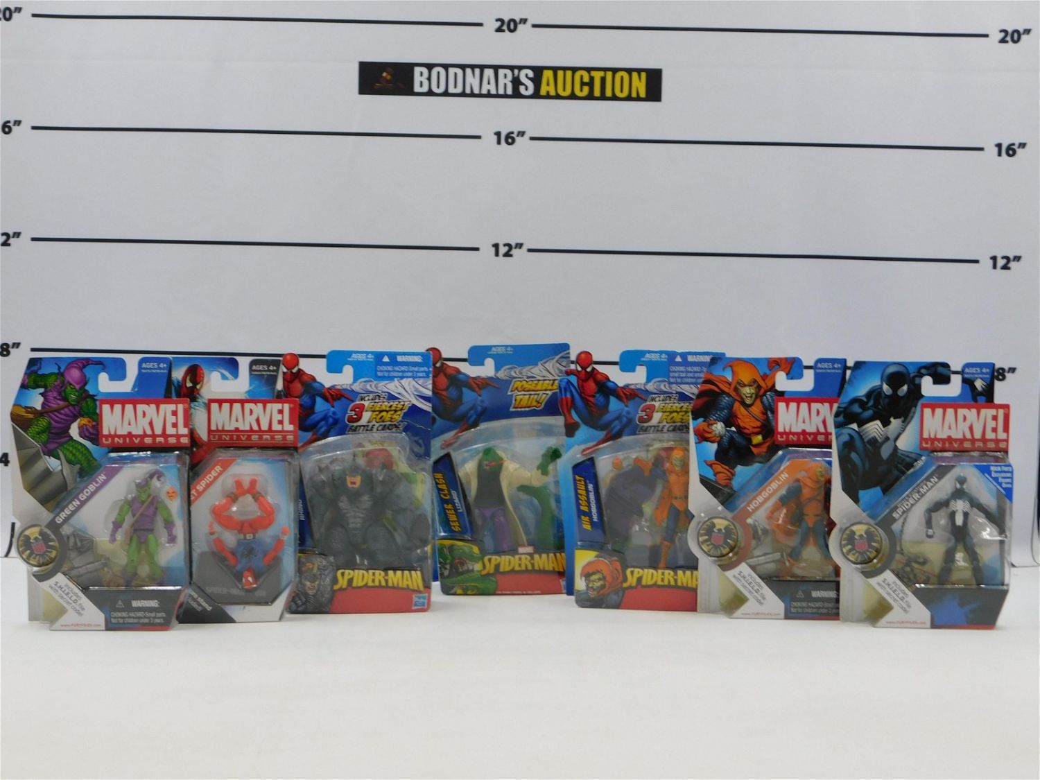 Lot of 7 Spider-Man 3.75" Figures including Marvel Universe: Green Goblin, Black Costume Spider-Man, Hobgoblin, and Scarlet Spider, and Hasbro Power Charge Rhino, Sewer Clash Lizard, and Air Assault Hobgoblin. 2008-2010. All items are shipped USPS or UPS and will be billed separately. A $10 handling fee is added to the shipping price per lot. Local pickups are in our South Brunswick location on Friday, Saturday and Monday ONLY! All pickups are by appointment only. Any condition issues will be listed in the description. Please read the terms for full information.