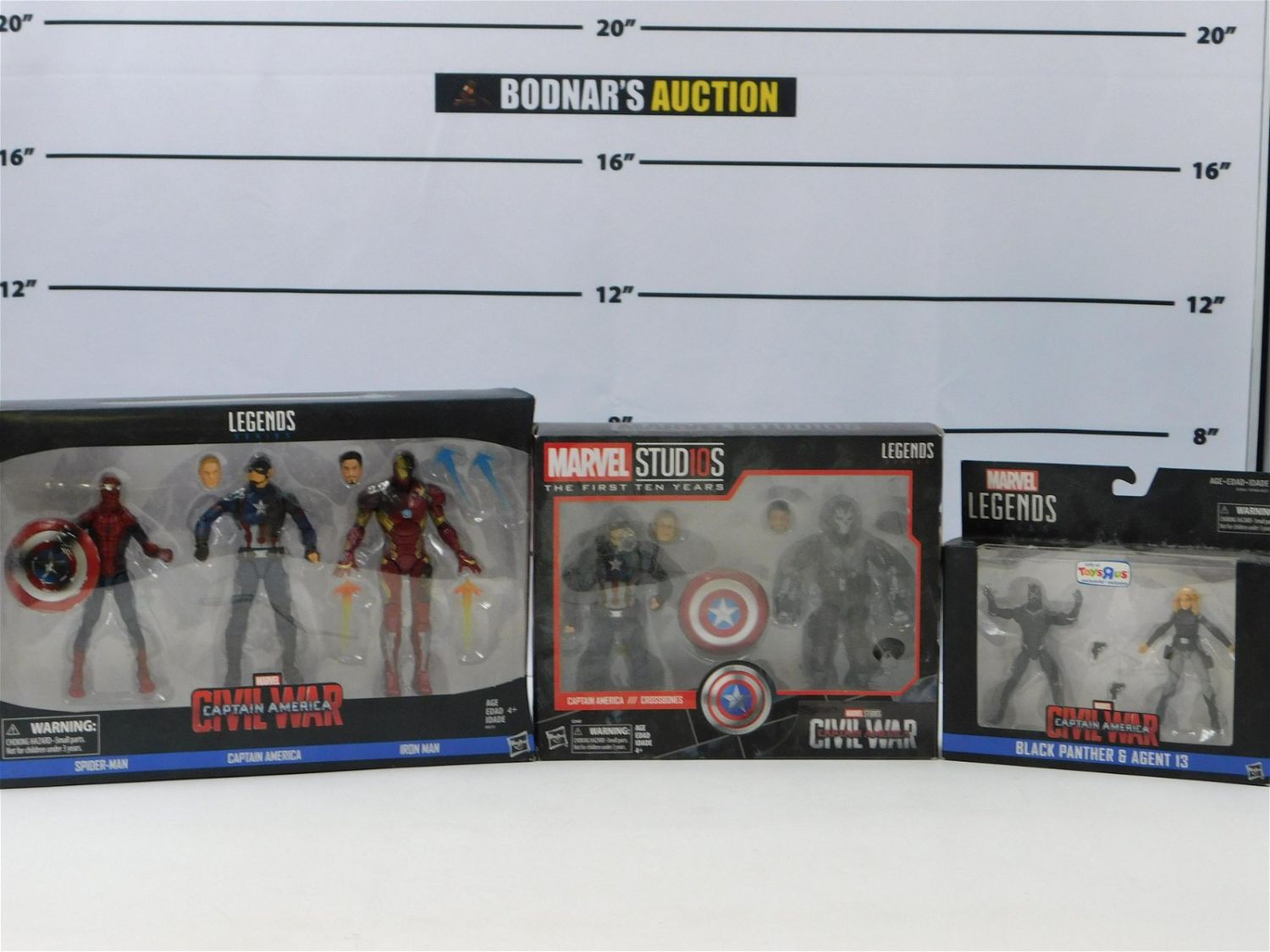 Lot of Marvel Legends Captain America Civil War Sets. Including 3 Pack – Spider-Man, Captain America, and Iron Man, The First Ten Years – Captain America and Crossbones, and Black Panther and Agent 13 – Toys R Us Exclusive. Hasbro 2015 – 2017. All items are shipped USPS or UPS and will be billed separately. A $10 handling fee is added to the shipping price per lot. Local pickups are in our South Brunswick location on Friday, Saturday and Monday ONLY! All pickups are by appointment only. Any condition issues will be listed in the description. Please read the terms for full information.