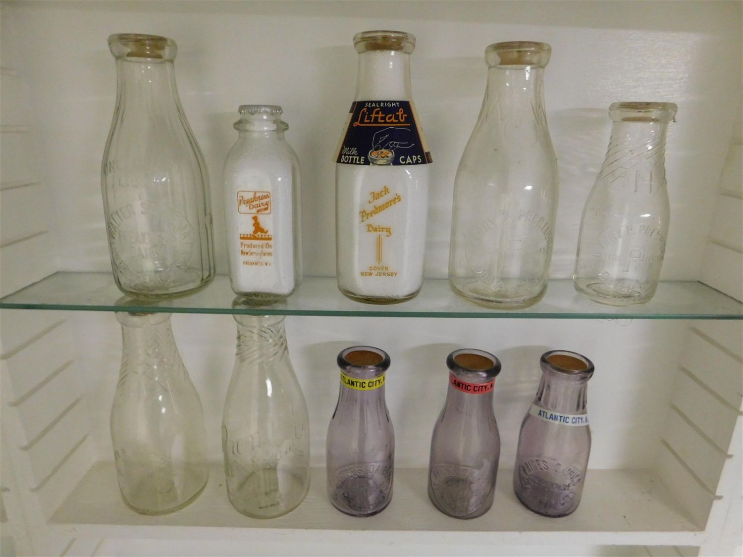 Lot of 10 NJ Dairy Bottles including Jack Predmores Dairy – Dover, Preakness Dairy – Preakness, Premiere Milk & Cream Co – Elizabeth, Walter Sikkema Preakness Dairy – Lower Preakness, (3) Harry P Predmore – Dover, and (3) Prices Dairy – Atlantic City – Amethyst w/minor fleabites. All bottles have tops. Measures between 8" and 10.5" tall. Please read the terms and conditions. This sale will be broadcast live on sale day with full descriptions of each lot being sold. All items MUST be paid for within 24 HOURS of the sale. Anyone who has not paid within 24 hours will have a dispute opened against them and will not be able to bid at future sales. All items in this sale are local pick up only, or shipping via UPS store in Kendall Park, NJ.. If you need your items shipped, we will send your items to the UPS store in Kendall Park, NJ . They will pack it and ship it to you and you will pay them separately and directly. Please call them to get a quote before bidding. Their phone number is 732-422-7242. If you are picking your items up you must contact us NO LATER than 24 hours after the sale to schedule an appointment to pick up. Pick up dates are Thursday, Friday, Saturday, and Monday ONLY, and are BY APPOINTMENT ONLY!! After Monday, if you have not picked up your items, they will be disposed of.