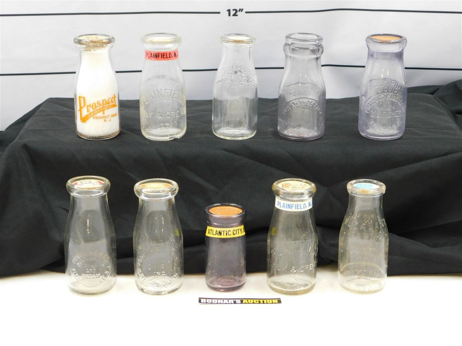 Lot of 10 NJ Cream Bottles including (2) Plainfield Milk & Co – 1 has chips, (2) Prices Dairies – Pleasantville – 1 Amethyst, Prospect Dairy Farms – Prospect Park, Prospect Hill Dairy – Athenia – Amethyst, Province Line Dairy – Princeton, Province Line Farm – Princeton – Amethyst, and (2) Pleasant Farms – Pt. Pleasant. All bottles have tops except 2. Measures between 4" and 5.5" tall. Please read the terms and conditions. This sale will be broadcast live on sale day with full descriptions of each lot being sold. All items MUST be paid for within 24 HOURS of the sale. Anyone who is not paid within 24 hours will have a dispute opened against them and will not be able to bid at future sales. All items in this sale are local pick up only, or shipping via UPS store in Kendall Park, NJ.. If you need your items shipped, we will send your items to the UPS store in Kendall Park, NJ . They will pack it and ship it to you and you will pay them separately and directly. Please call them to get a quote before bidding. Their phone number is 732-422-7242. If you are picking your items up you must contact us NO LATER than 24 hours after the sale to schedule an appointment to pick up. Pick up dates are Thursday, Friday, Saturday, and Monday ONLY, and are BY APPOINTMENT ONLY!! After Monday, if you have not picked up your items, they will be disposed of.