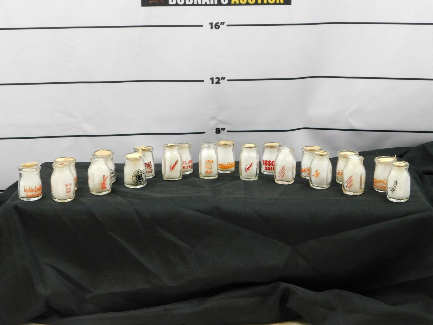 Lot of 20 NJ Individual Creamer Bottles including (2) Conover’s Guernsey Dairy – Hightstown, (2) Cooper’s Baby Top Dairy, Bush Dairy Farms – Flemington, Jersey Hills Dairy, Alderney, Brookside Creamery, Hohnekers Dairy, (2) Decker’s Dairy, Pleasant Farms, Glenside Dairy, Franklin Lake Dairy, Sussex County, White Dotte Farms, Cumberland Dairy, Tuscan Dairy, Hollow Hill Farm – Convent, and Garden State Farms. Measures between 2" – 2.5" tall. Please read the terms and conditions. This sale will be broadcast live on sale day with full descriptions of each lot being sold. All items MUST be paid for within 24 HOURS of the sale. Anyone who has not paid within 24 hours will have a dispute opened against them and will not be able to bid at future sales. All items in this sale are local pick up only, or shipping via UPS store in Kendall Park, NJ.. If you need your items shipped, we will send your items to the UPS store in Kendall Park, NJ . They will pack it and ship it to you and you will pay them separately and directly. Please call them to get a quote before bidding. Their phone number is 732-422-7242. If you are picking your items up you must contact us NO LATER than 24 hours after the sale to schedule an appointment to pick up. Pick up dates are Thursday, Friday, Saturday, and Monday ONLY, and are BY APPOINTMENT ONLY!! After Monday, if you have not picked up your items, they will be disposed of.