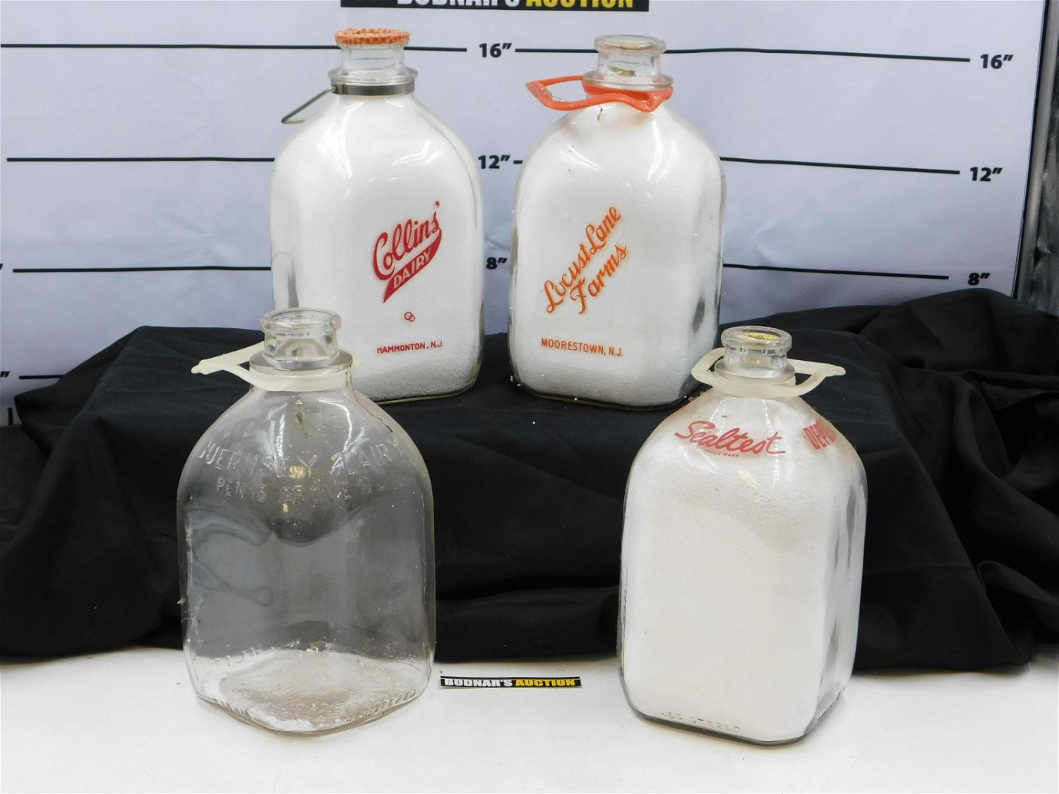 Lot of 4 NJ One Gallon Dairy Jugs including Sealtest, Locust Lane Farms – Moorestown, Guernsey Dairy – Penns Grove, and Collin’s Dairy – Hammonton. Measures 11" tall . All have tops except 1. Please read the terms and conditions. This sale will be broadcast live on sale day with full descriptions of each lot being sold. All items MUST be paid for within 24 HOURS of the sale. Anyone who has not paid within 24 hours will have a dispute opened against them and will not be able to bid at future sales. All items in this sale are local pick up only, or shipping via UPS store in Kendall Park, NJ.. If you need your items shipped, we will send your items to the UPS store in Kendall Park, NJ . They will pack it and ship it to you and you will pay them separately and directly. Please call them to get a quote before bidding. Their phone number is 732-422-7242. If you are picking your items up you must contact us NO LATER than 24 hours after the sale to schedule an appointment to pick up. Pick up dates are Thursday, Friday, Saturday, and Monday ONLY, and are BY APPOINTMENT ONLY!! After Monday, if you have not picked up your items, they will be disposed of.