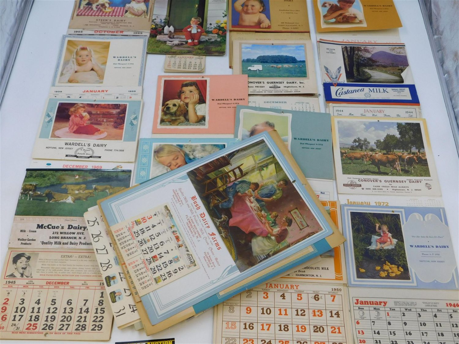Group Lot of New Jersey Dairy Advertising Paper Calendars. Spans many years – 1940’s through the 1970’s. Conditions Vary – Most in Good Shape. Please read the terms and conditions. This sale will be broadcast live on sale day with full descriptions of each lot being sold. All items MUST be paid for within 24 HOURS of the sale. Anyone who has not paid within 24 hours will have a dispute opened against them and will not be able to bid at future sales. All items in this sale are local pick up only, or shipping via UPS store in Kendall Park, NJ.. If you need your items shipped, we will send your items to the UPS store in Kendall Park, NJ . They will pack it and ship it to you and you will pay them separately and directly. Please call them to get a quote before bidding. Their phone number is 732-422-7242. If you are picking your items up you must contact us NO LATER than 24 hours after the sale to schedule an appointment to pick up. Pick up dates are Thursday, Friday, Saturday, and Monday ONLY, and are BY APPOINTMENT ONLY!! After Monday, if you have not picked up your items, they will be disposed of.