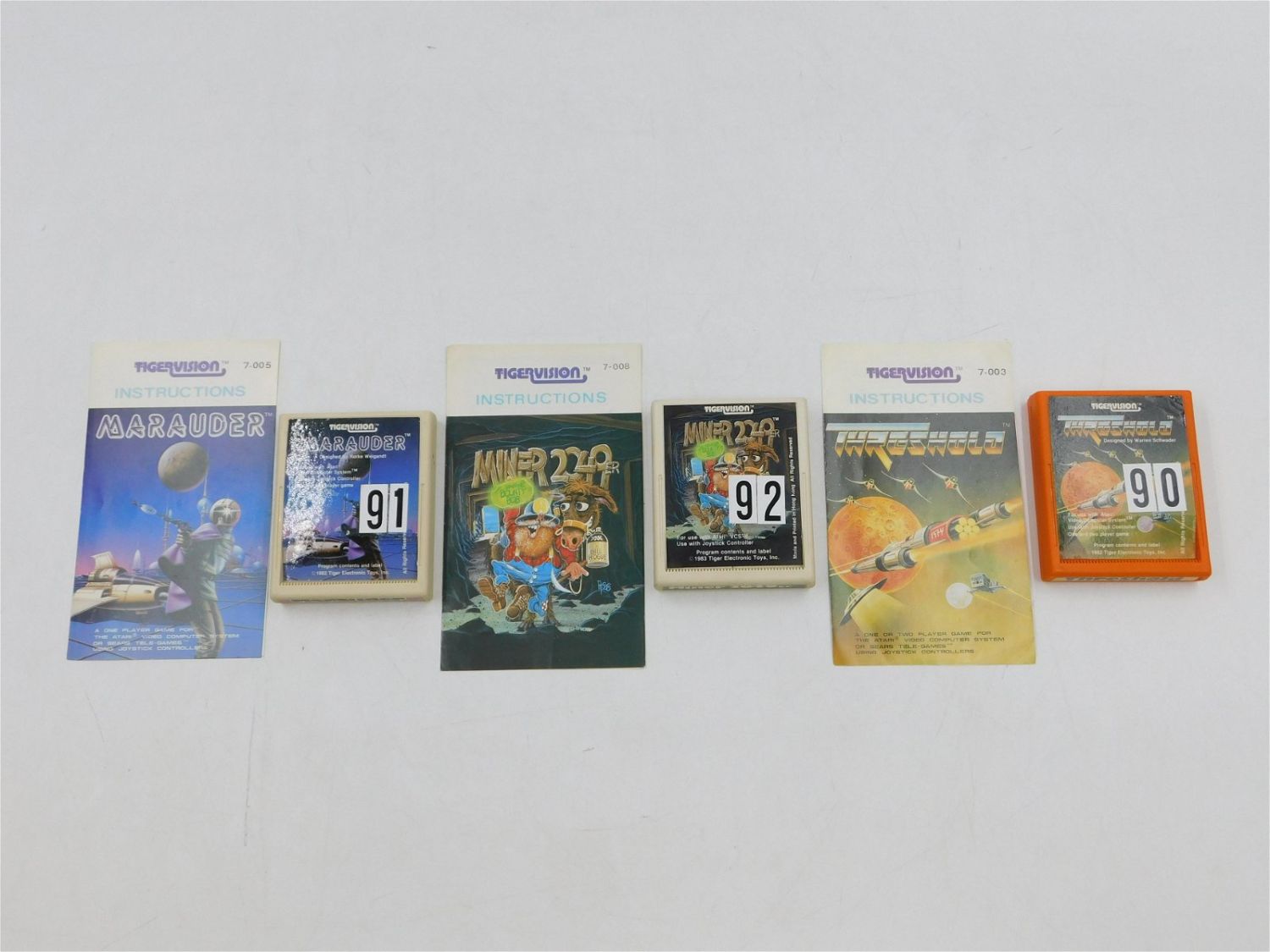 Lot of 3 Atari Games with Manuals. Includes Threshold, Miner 2049, and Marauder. All invoices must be paid within 24 hours of the sale. All items are shipped USPS or UPS and will be billed separately. A $10 handling fee is added to the shipping price per lot. Local pickups are in our South Brunswick location on Friday, Saturday and Monday ONLY! All pickups are by appointment only. Any condition issues will be listed in the description. Please read the terms for full information.