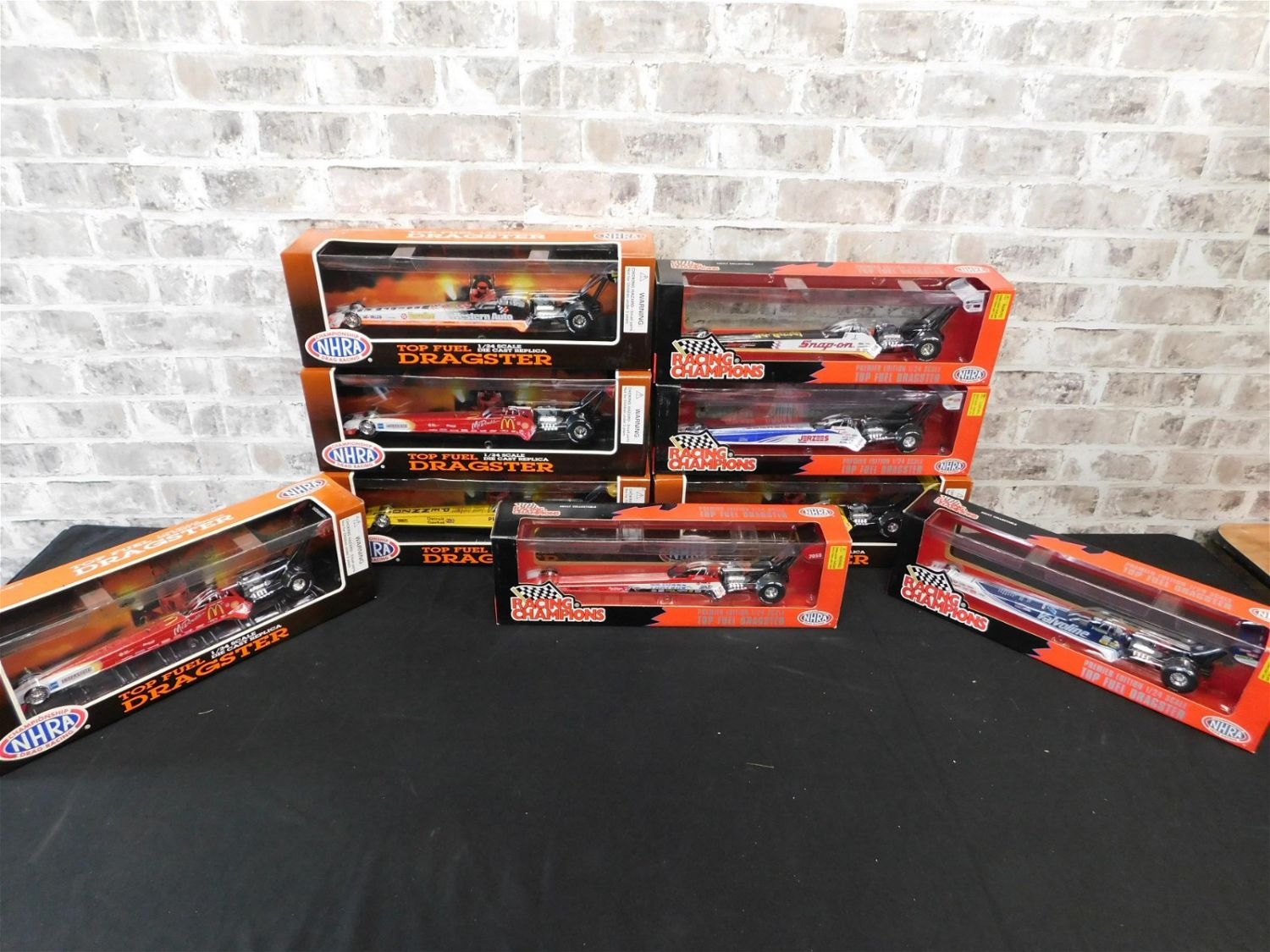 Lot of 9 Racing Champions 1:24 Scale Top Fuel Dragsters. All invoices must be paid within 24 hours of the sale. All items are shipped USPS or UPS and will be billed separately. A $10 handling fee is added to the shipping price per lot. Local pickups are in our South Brunswick location on Friday, Saturday and Monday ONLY! All pickups are by appointment only. Any condition issues will be listed in the description. Please read the terms for full information.