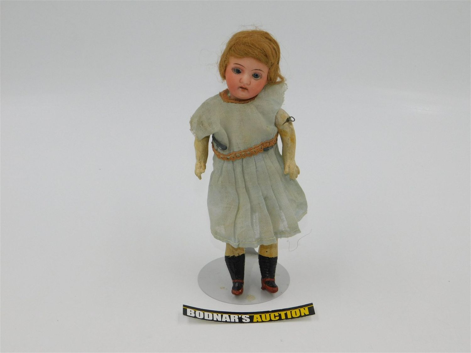 Antique Miniature German Porcelain Doll. Head is Porcelain and Body is Composition. Sleepy Eyes. Painted Shoes and Socks. Light chipping on hands. Marked on Neck Germany. Measures 8" tall. This sale will be broadcast live on sale day with full descriptions of each lot being sold. All items MUST be paid for within 24 HOURS of the sale. Anyone who has not paid within 24 hours will have a dispute opened against them and will not be able to bid at future sales. All items in this sale are local pick up only, or shipping via UPS store in Kendall Park, NJ.. If you need your items shipped, we will send your items to the UPS store in Kendall Park, NJ . They will pack it and ship it to you and you will pay them separately and directly. Please call them to get a quote before bidding. Their phone number is 732-422-7242. If you are picking your items up you must contact us NO LATER than 24 hours after the sale to schedule an appointment to pick up. Pick up dates are Thursday, Friday, Saturday, and Monday ONLY, and are BY APPOINTMENT ONLY!! After Monday, if you have not picked up your items, they will be disposed of.