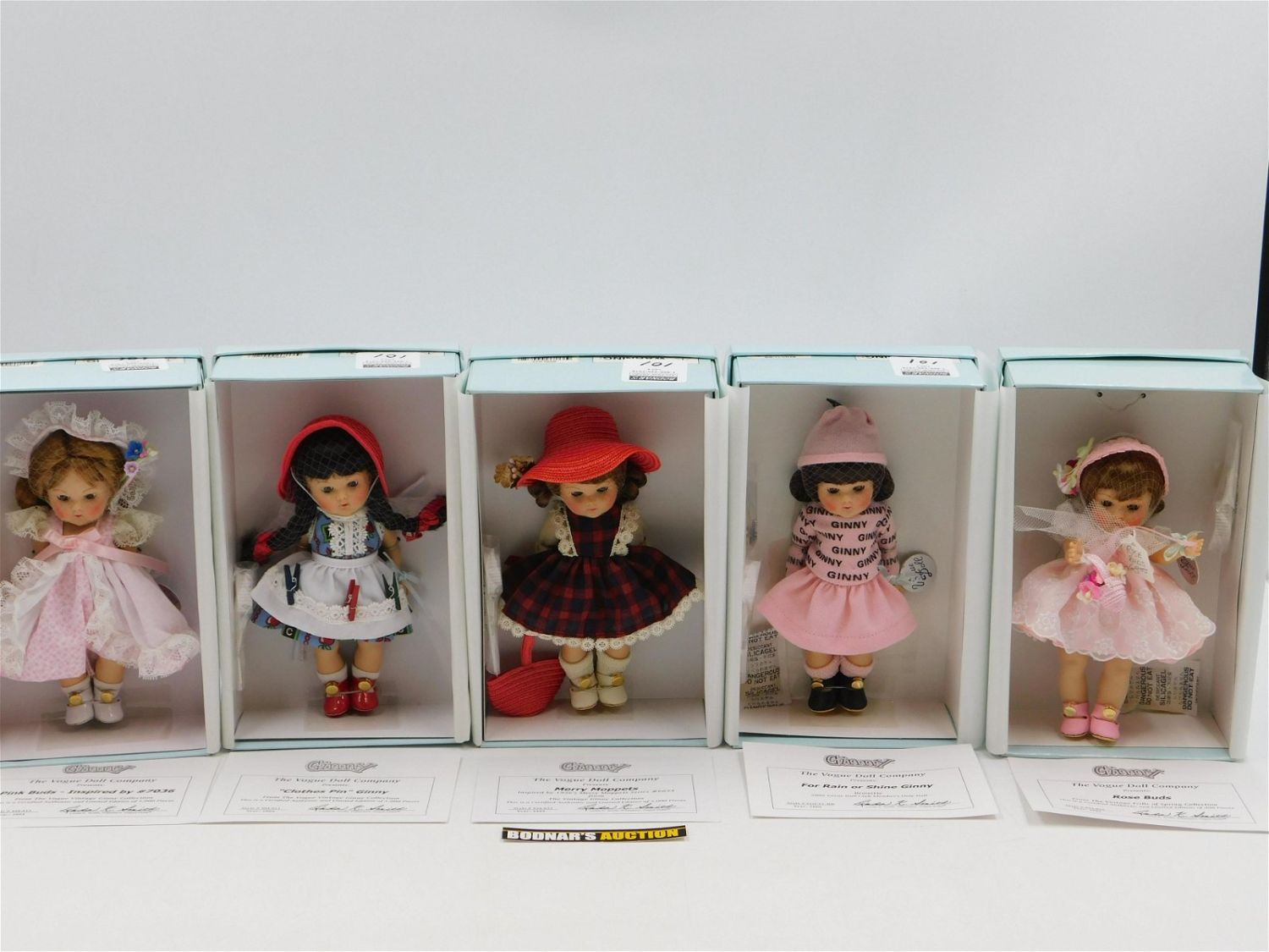 Lot of 5 Limited Edition Ginny Vogue Dolls including Clothes Pin Ginny – Limited to 1000, Merry Moppets – Limited to 1000, For Rain or Shine Ginny – Brunette – Members Only, Rose Buds – Limited to 350, and Pink Buds – Limited to 1000. All Come with COA’s. All measures 8". All come in original box. This sale will be broadcast live on sale day with full descriptions of each lot being sold. All items MUST be paid for within 24 HOURS of the sale. Anyone who has not paid within 24 hours will have a dispute opened against them and will not be able to bid at future sales. All items in this sale are local pick up only, or shipping via UPS store in Kendall Park, NJ.. If you need your items shipped, we will send your items to the UPS store in Kendall Park, NJ . They will pack it and ship it to you and you will pay them separately and directly. Please call them to get a quote before bidding. Their phone number is 732-422-7242. If you are picking your items up you must contact us NO LATER than 24 hours after the sale to schedule an appointment to pick up. Pick up dates are Thursday, Friday, Saturday, and Monday ONLY, and are BY APPOINTMENT ONLY!! After Monday, if you have not picked up your items, they will be disposed of.