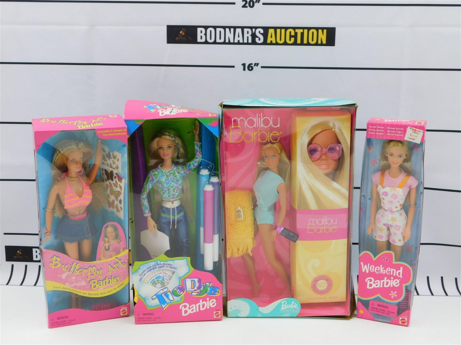 Lot of 4 Barbie Dolls including Weekend Barbie, Butterfly Art Barbie, Tie Dye Barbie, and Malibu Barbie – Barbie Collectibles. All come in original boxes. This sale will be broadcast live on sale day with full descriptions of each lot being sold. All items MUST be paid for within 24 HOURS of the sale. Anyone who has not paid within 24 hours will have a dispute opened against them and will not be able to bid at future sales. All items in this sale are local pick up only, or shipping via UPS store in Kendall Park, NJ.. If you need your items shipped, we will send your items to the UPS store in Kendall Park, NJ . They will pack it and ship it to you and you will pay them separately and directly. Please call them to get a quote before bidding. Their phone number is 732-422-7242. If you are picking your items up you must contact us NO LATER than 24 hours after the sale to schedule an appointment to pick up. Pick up dates are Thursday, Friday, Saturday, and Monday ONLY, and are BY APPOINTMENT ONLY!! After Monday, if you have not picked up your items, they will be disposed of.