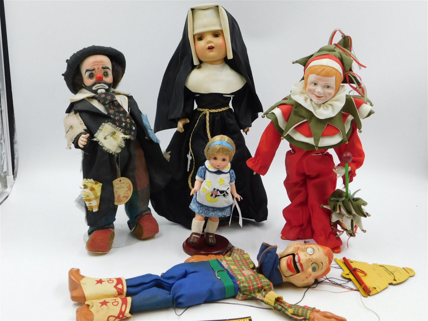 Box Lot of Dolls including Musical Jester, Emmett Kelly Clown, Unitrol Howdy Dowdy Marionette – Has Crazing, Madame Alexander Hey Diddle Diddle, and Composition Nun Doll. This sale will be broadcast live on sale day with full descriptions of each lot being sold. All items MUST be paid for within 24 HOURS of the sale. Anyone who has not paid within 24 hours will have a dispute opened against them and will not be able to bid at future sales. All items in this sale are local pick up only, or shipping via UPS store in Kendall Park, NJ.. If you need your items shipped, we will send your items to the UPS store in Kendall Park, NJ . They will pack it and ship it to you and you will pay them separately and directly. Please call them to get a quote before bidding. Their phone number is 732-422-7242. If you are picking your items up you must contact us NO LATER than 24 hours after the sale to schedule an appointment to pick up. Pick up dates are Thursday, Friday, Saturday, and Monday ONLY, and are BY APPOINTMENT ONLY!! After Monday, if you have not picked up your items, they will be disposed of.