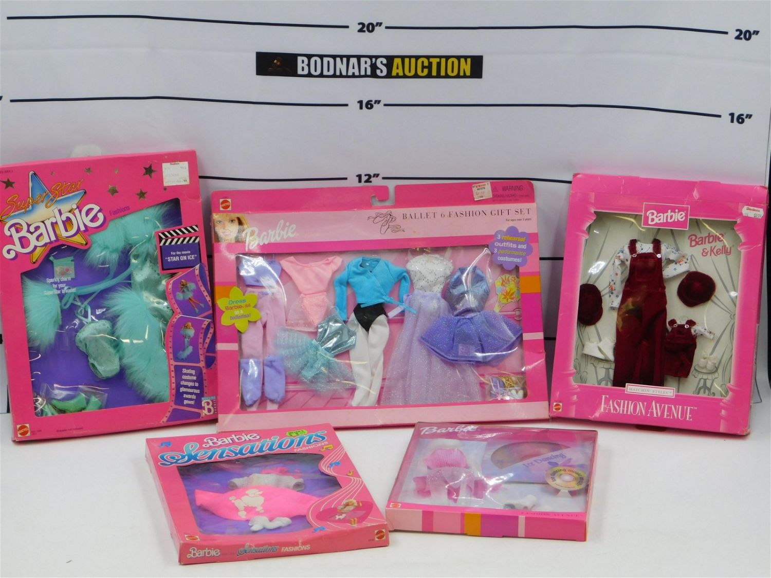 Lot of 5 Barbie Outfit Sets including Fashion Avenue Ice Dancing, Ballet 6 Fashion Gift Set, Barbie Sensations, Super Star Barbie, and Barbie and Kelly Fashion Avenue Matching Sets. All come in original boxes. This sale will be broadcast live on sale day with full descriptions of each lot being sold. All items MUST be paid for within 24 HOURS of the sale. Anyone who has not paid within 24 hours will have a dispute opened against them and will not be able to bid at future sales. All items in this sale are local pick up only, or shipping via UPS store in Kendall Park, NJ.. If you need your items shipped, we will send your items to the UPS store in Kendall Park, NJ . They will pack it and ship it to you and you will pay them separately and directly. Please call them to get a quote before bidding. Their phone number is 732-422-7242. If you are picking your items up you must contact us NO LATER than 24 hours after the sale to schedule an appointment to pick up. Pick up dates are Thursday, Friday, Saturday, and Monday ONLY, and are BY APPOINTMENT ONLY!! After Monday, if you have not picked up your items, they will be disposed of.