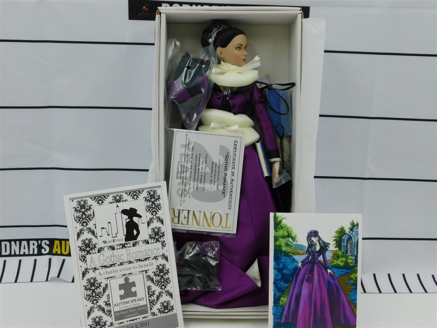 Robert Tonner Gothic Romance Doll. New in Box with COA. Limited Edition to 150 Pieces. This sale will be broadcast live on sale day with full descriptions of each lot being sold. All items MUST be paid for within 24 HOURS of the sale. Anyone who has not paid within 24 hours will have a dispute opened against them and will not be able to bid at future sales. All items in this sale are local pick up only, or shipping via UPS store in Kendall Park, NJ.. If you need your items shipped, we will send your items to the UPS store in Kendall Park, NJ . They will pack it and ship it to you and you will pay them separately and directly. Please call them to get a quote before bidding. Their phone number is 732-422-7242. If you are picking your items up you must contact us NO LATER than 24 hours after the sale to schedule an appointment to pick up. Pick up dates are Thursday, Friday, Saturday, and Monday ONLY, and are BY APPOINTMENT ONLY!! After Monday, if you have not picked up your items, they will be disposed of.