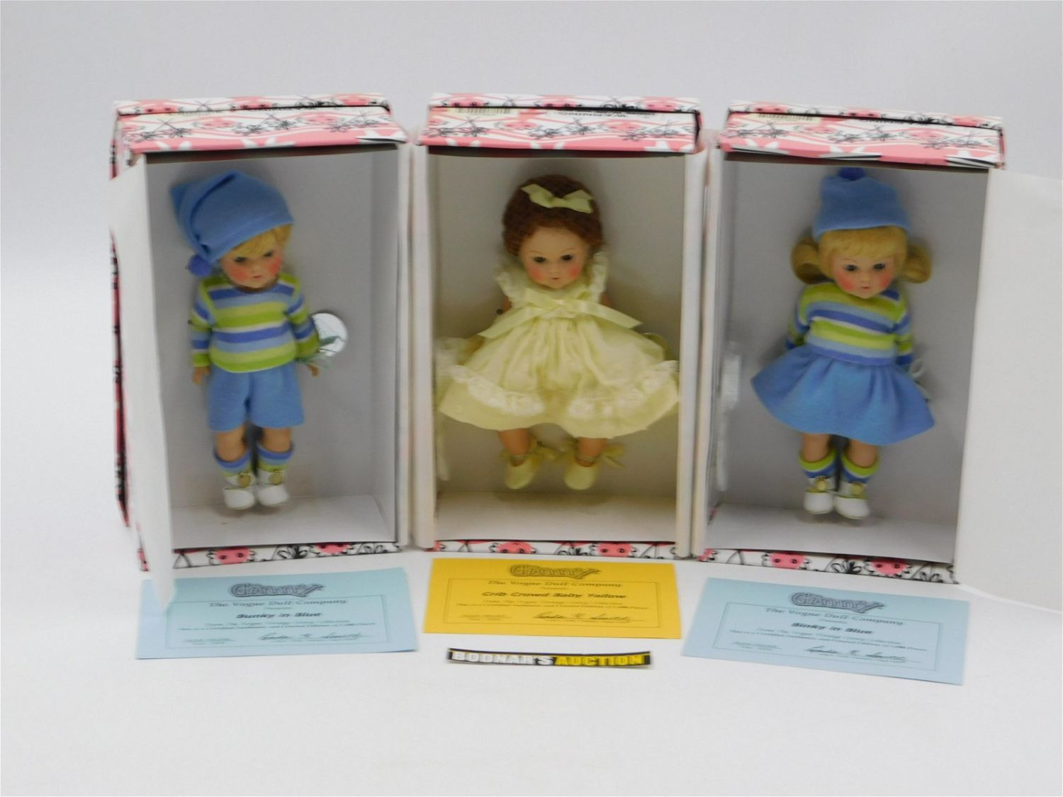 Lot of 3 Limited Edition Ginny Vogue Dolls including Crib Crowd Baby Yellow, Binky in Blue, and Bunky in Blue. All Limited to 1000 with COA’s. All Dolls appear to be in New condition and come in the original boxes. All dolls measure 8". This sale will be broadcast live on sale day with full descriptions of each lot being sold. All items MUST be paid for within 24 HOURS of the sale. Anyone who has not paid within 24 hours will have a dispute opened against them and will not be able to bid at future sales. All items in this sale are local pick up only, or shipping via UPS store in Kendall Park, NJ.. If you need your items shipped, we will send your items to the UPS store in Kendall Park, NJ . They will pack it and ship it to you and you will pay them separately and directly. Please call them to get a quote before bidding. Their phone number is 732-422-7242. If you are picking your items up you must contact us NO LATER than 24 hours after the sale to schedule an appointment to pick up. Pick up dates are Thursday, Friday, Saturday, and Monday ONLY, and are BY APPOINTMENT ONLY!! After Monday, if you have not picked up your items, they will be disposed of.