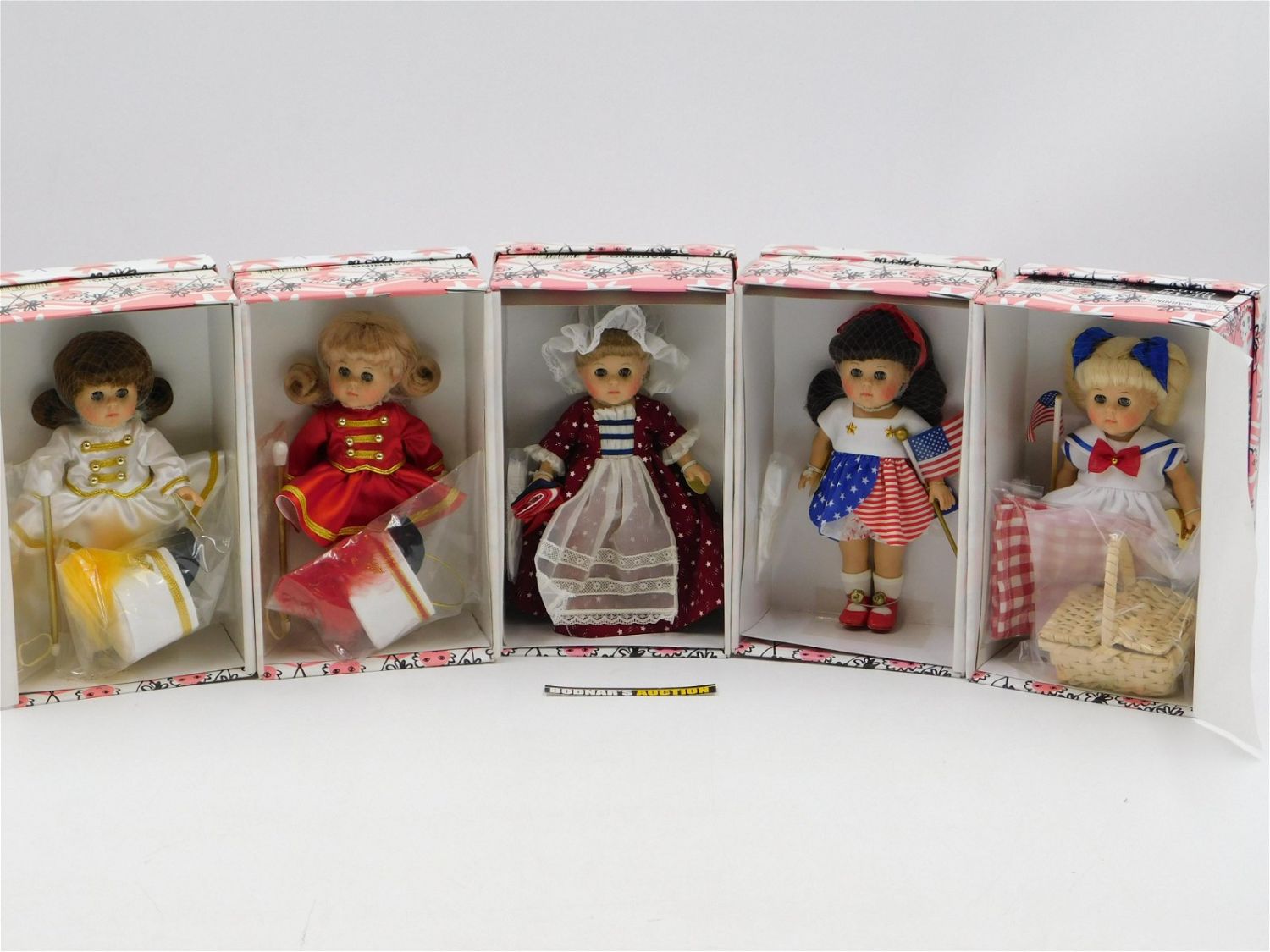 Lot of 5 Ginny Vogue Dolls including Drum Majorette – White, Drum Majorette – Red, Independence Day – Limited Edition to 350, Patriotic Ginny, and Betsy Ross. All Dolls appear to be in New condition and come in the original boxes. All dolls measure 8". This sale will be broadcast live on sale day with full descriptions of each lot being sold. All items MUST be paid for within 24 HOURS of the sale. Anyone who has not paid within 24 hours will have a dispute opened against them and will not be able to bid at future sales. All items in this sale are local pick up only, or shipping via UPS store in Kendall Park, NJ.. If you need your items shipped, we will send your items to the UPS store in Kendall Park, NJ . They will pack it and ship it to you and you will pay them separately and directly. Please call them to get a quote before bidding. Their phone number is 732-422-7242. If you are picking your items up you must contact us NO LATER than 24 hours after the sale to schedule an appointment to pick up. Pick up dates are Thursday, Friday, Saturday, and Monday ONLY, and are BY APPOINTMENT ONLY!! After Monday, if you have not picked up your items, they will be disposed of.