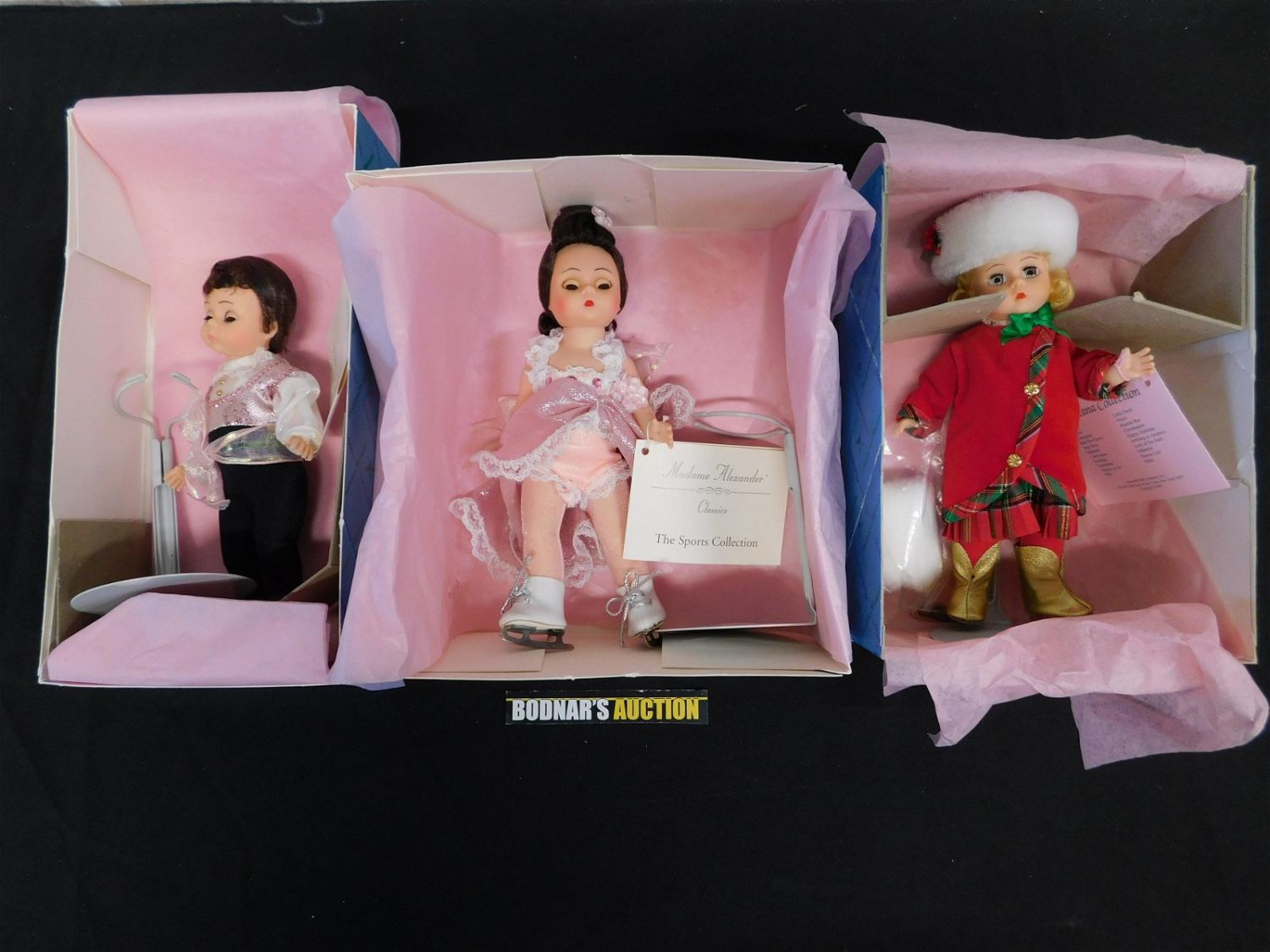 Lot of 3 Madame Alexander Dolls including Ice Skating Girl Brunette, Ice Skating Boy Brunette, and Holiday on Ice 319. This sale will be broadcast live on sale day with full descriptions of each lot being sold. All items MUST be paid for within 24 HOURS of the sale. Anyone who has not paid within 24 hours will have a dispute opened against them and will not be able to bid at future sales. All items in this sale are local pick up only, or shipping via UPS store in Kendall Park, NJ.. If you need your items shipped, we will send your items to the UPS store in Kendall Park, NJ . They will pack it and ship it to you and you will pay them separately and directly. Please call them to get a quote before bidding. Their phone number is 732-422-7242. If you are picking your items up you must contact us NO LATER than 24 hours after the sale to schedule an appointment to pick up. Pick up dates are Thursday, Friday, Saturday, and Monday ONLY, and are BY APPOINTMENT ONLY!! After Monday, if you have not picked up your items, they will be disposed of.