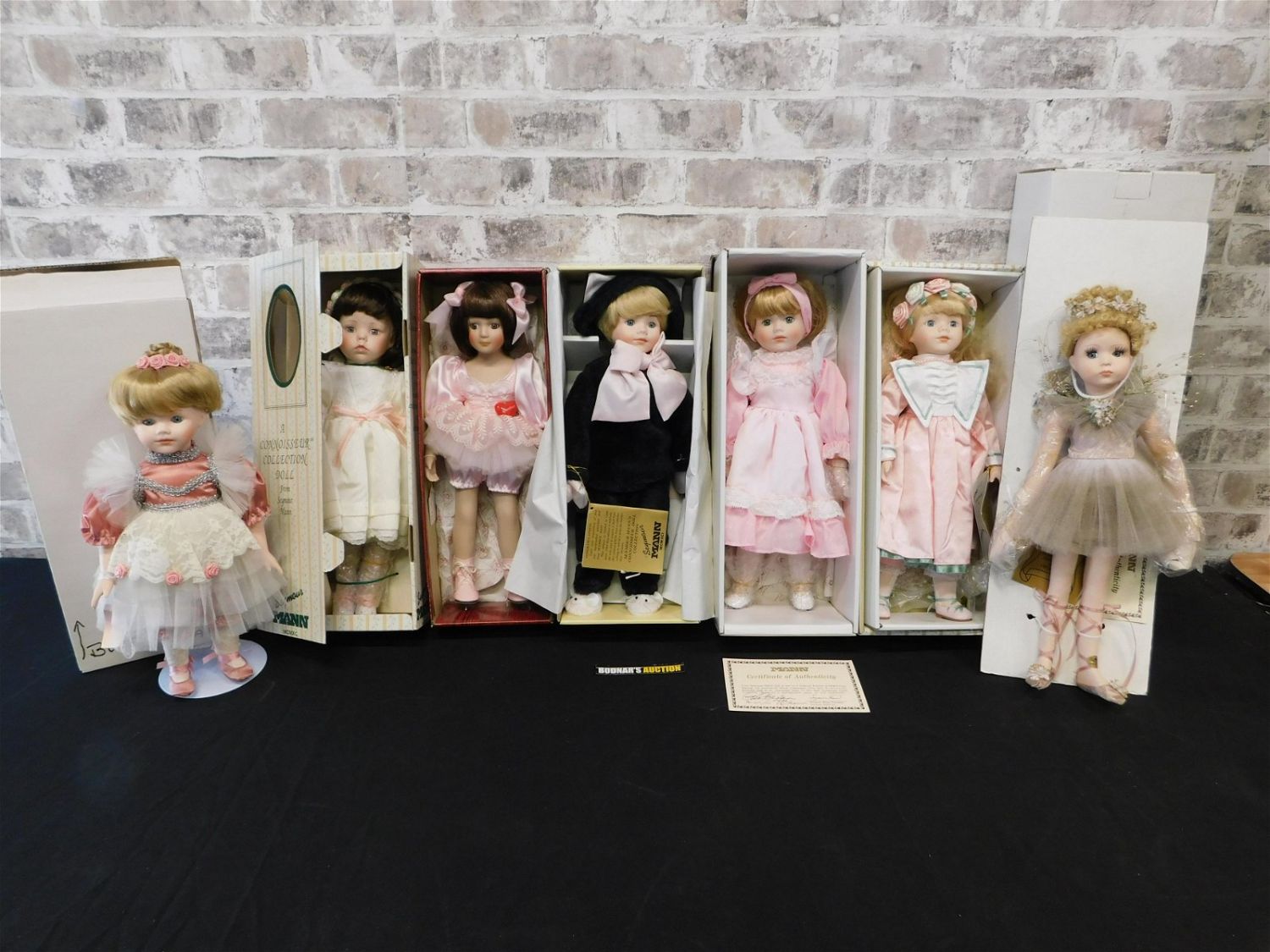 Lot of 7 Seymour Mann and Dynasty Doll Porcelain Dolls. The Dynasty Dolls include Alana and Suzie. The Seymour Mann Dolls include Trisha, Dom-290, Tania, Sutter, and another Sutter. They measure approx. 14"-16" tall. This sale will be broadcast live on sale day with full descriptions of each lot being sold. All items MUST be paid for within 24 HOURS of the sale. Anyone who has not paid within 24 hours will have a dispute opened against them and will not be able to bid at future sales. All items in this sale are local pick up only, or shipping via UPS store in Kendall Park, NJ.. If you need your items shipped, we will send your items to the UPS store in Kendall Park, NJ . They will pack it and ship it to you and you will pay them separately and directly. Please call them to get a quote before bidding. Their phone number is 732-422-7242. If you are picking your items up you must contact us NO LATER than 24 hours after the sale to schedule an appointment to pick up. Pick up dates are Thursday, Friday, Saturday, and Monday ONLY, and are BY APPOINTMENT ONLY!! After Monday, if you have not picked up your items, they will be disposed of.