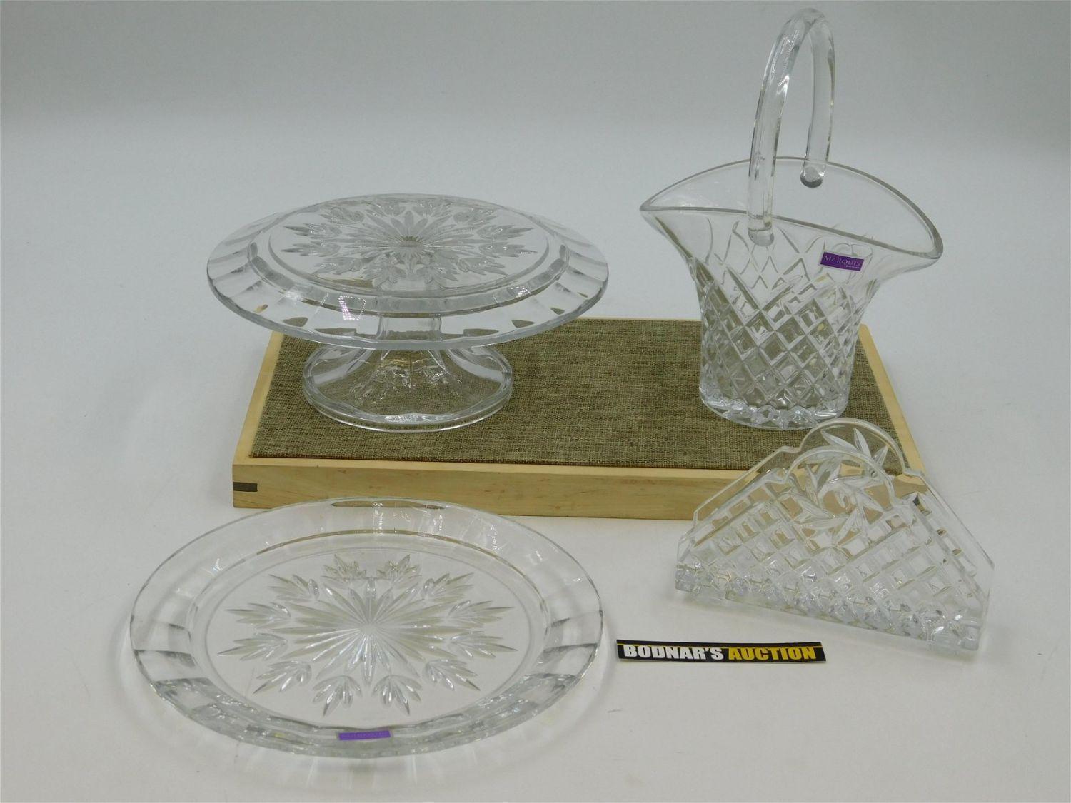 Lot of Marquis Waterford including Cake Plate, Matching Serving Plate, Basket, and Napkin Holder. There are no reserves in the entire sale. All invoices must be paid within 24 hours of the sale. All items are shipped USPS or UPS and will be billed separately. A $10 handling fee is added to the shipping price per lot. Local pickups are in our South Brunswick location on Friday, Saturday and Monday ONLY! All pickups are by appointment only. Any condition issues will be listed in the description. Please read the terms for full information.