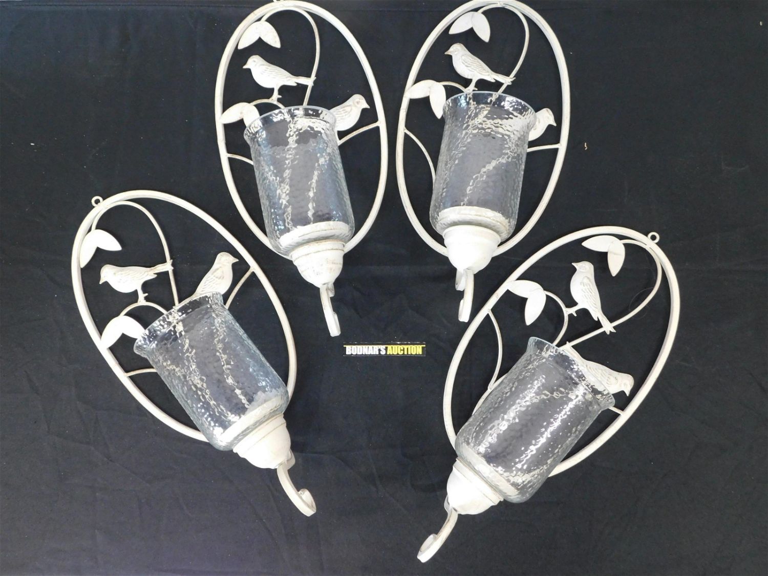 Lot of 4 White Metal and Glass Bird Sconces. This sale will be broadcast live on sale day with full descriptions of each lot being sold. All items MUST be paid for within 24 HOURS of the sale. Anyone who has not paid within 24 hours will have a dispute opened against them and will not be able to bid at future sales. All items in this sale are local pick up only, or shipping via UPS store in Kendall Park, NJ.. If you need your items shipped, we will send your items to the UPS store in Kendall Park, NJ . They will pack it and ship it to you and you will pay them separately and directly. Please call them to get a quote before bidding. Their phone number is 732-422-7242. If you are picking your items up you must contact us NO LATER than 24 hours after the sale to schedule an appointment to pick up. Pick up dates are Thursday, Friday, Saturday, and Monday ONLY, and are BY APPOINTMENT ONLY!! After Monday, if you have not picked up your items, they will be disposed of.
