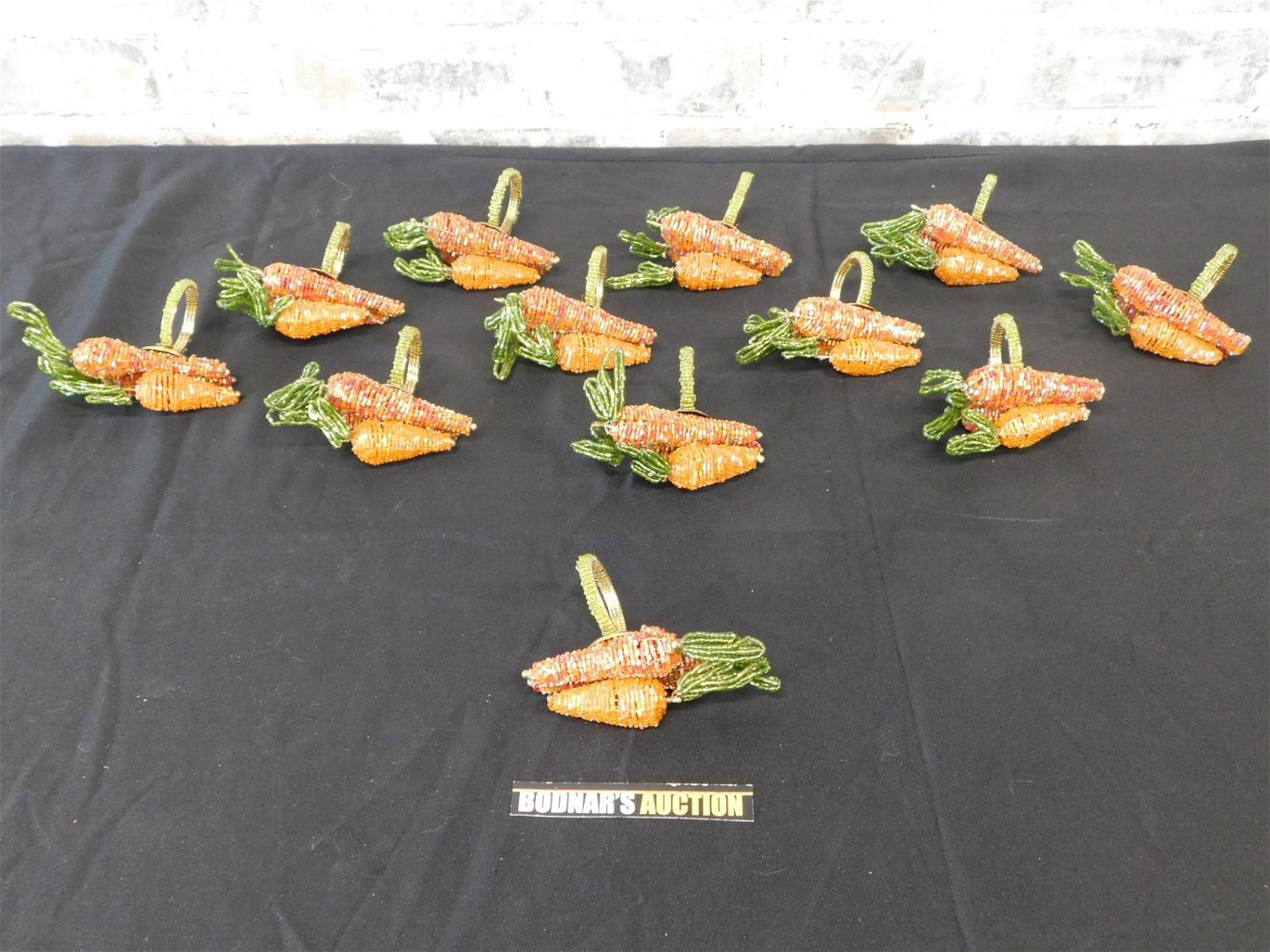 Lot of 12 Beaded Carrot Napkin Holders. This sale will be broadcast live on sale day with full descriptions of each lot being sold. All items MUST be paid for within 24 HOURS of the sale. Anyone who has not paid within 24 hours will have a dispute opened against them and will not be able to bid at future sales. All items in this sale are local pick up only, or shipping via UPS store in Kendall Park, NJ.. If you need your items shipped, we will send your items to the UPS store in Kendall Park, NJ . They will pack it and ship it to you and you will pay them separately and directly. Please call them to get a quote before bidding. Their phone number is 732-422-7242. If you are picking your items up you must contact us NO LATER than 24 hours after the sale to schedule an appointment to pick up. Pick up dates are Thursday, Friday, Saturday, and Monday ONLY, and are BY APPOINTMENT ONLY!! After Monday, if you have not picked up your items, they will be disposed of.