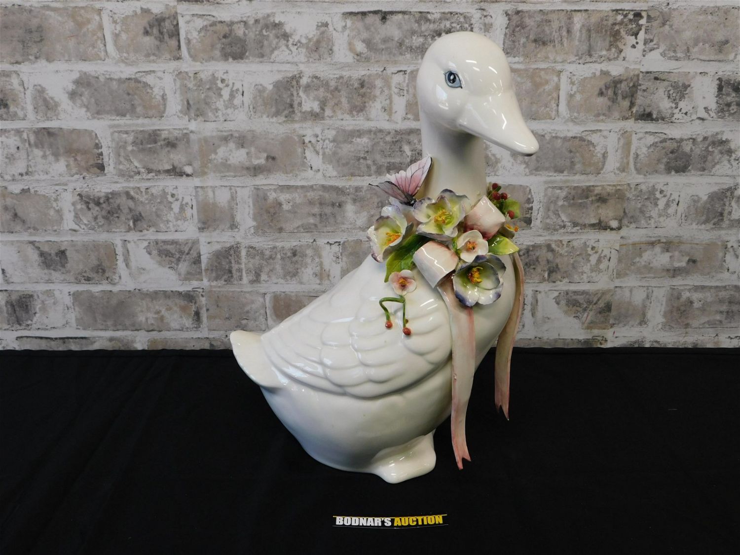 Eva Gordon Hand Painted Goose Figurine with a Flower and Butterfly Decoration. Artist Signed. Measures 16" tall x 10" wide. This sale will be broadcast live on sale day with full descriptions of each lot being sold. All items MUST be paid for within 24 HOURS of the sale. Anyone who has not paid within 24 hours will have a dispute opened against them and will not be able to bid at future sales. All items in this sale are local pick up only, or shipping via UPS store in Kendall Park, NJ.. If you need your items shipped, we will send your items to the UPS store in Kendall Park, NJ . They will pack it and ship it to you and you will pay them separately and directly. Please call them to get a quote before bidding. Their phone number is 732-422-7242. If you are picking your items up you must contact us NO LATER than 24 hours after the sale to schedule an appointment to pick up. Pick up dates are Thursday, Friday, Saturday, and Monday ONLY, and are BY APPOINTMENT ONLY!! After Monday, if you have not picked up your items, they will be disposed of.