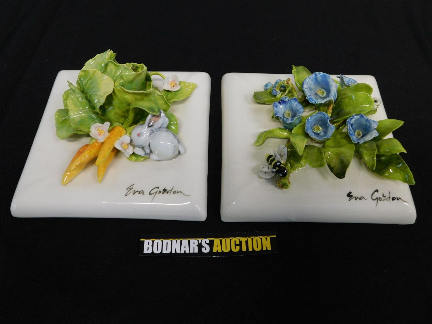 Lot of 2 Eva Gordon Hand Painted Wall Plaques – Flowers and Bumblebee, Bunny with Carrots. Measures 6". This sale will be broadcast live on sale day with full descriptions of each lot being sold. All items MUST be paid for within 24 HOURS of the sale. Anyone who has not paid within 24 hours will have a dispute opened against them and will not be able to bid at future sales. All items in this sale are local pick up only, or shipping via UPS store in Kendall Park, NJ.. If you need your items shipped, we will send your items to the UPS store in Kendall Park, NJ . They will pack it and ship it to you and you will pay them separately and directly. Please call them to get a quote before bidding. Their phone number is 732-422-7242. If you are picking your items up you must contact us NO LATER than 24 hours after the sale to schedule an appointment to pick up. Pick up dates are Thursday, Friday, Saturday, and Monday ONLY, and are BY APPOINTMENT ONLY!! After Monday, if you have not picked up your items, they will be disposed of.