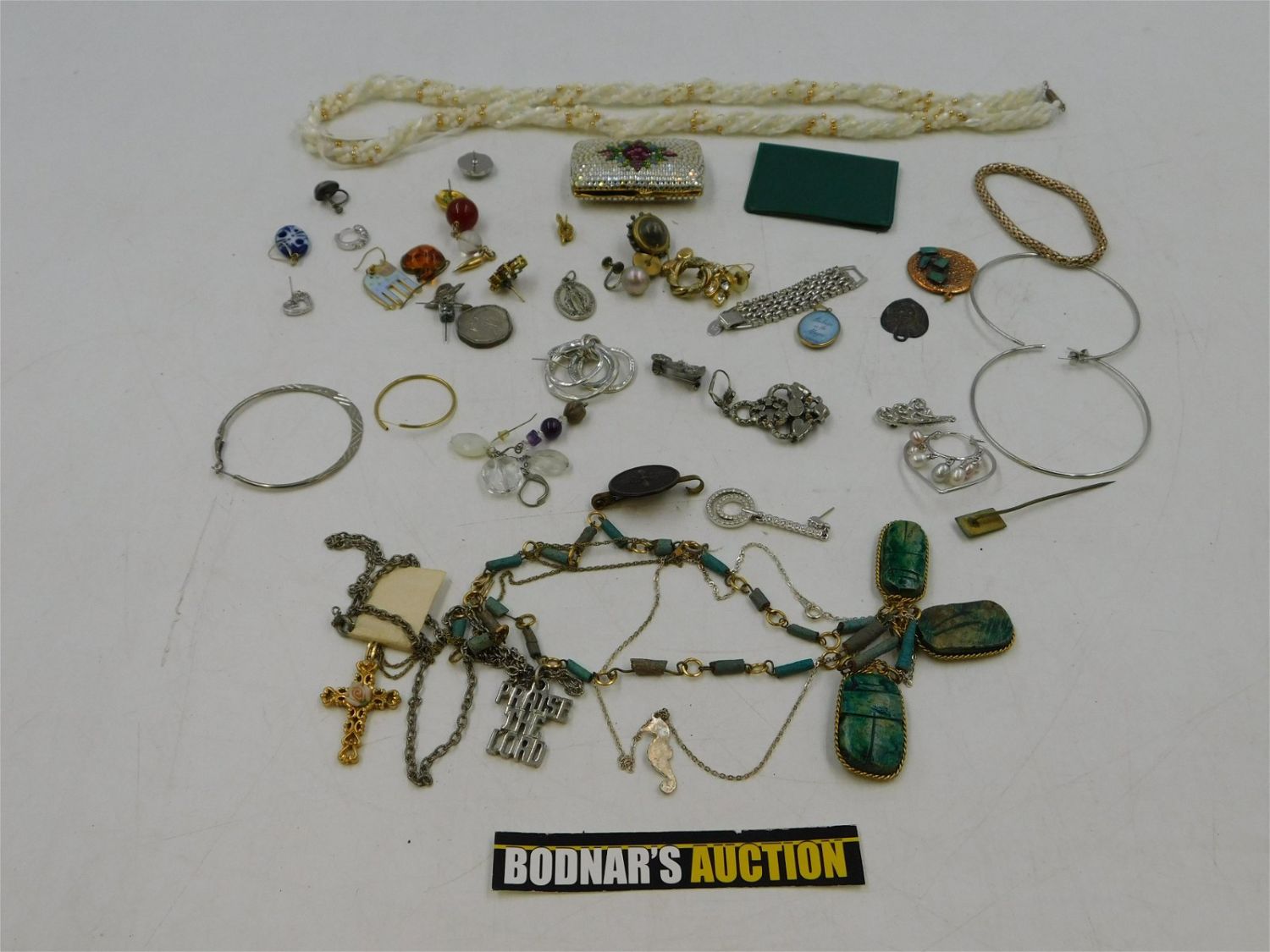 Lot of Misc. Costume Jewelry including Rhinestone Coin Purse, Rhinestone Ring, Necklaces, Earrings and More. This sale will be broadcast live on sale day with full descriptions of each lot being sold. All items MUST be paid for within 24 HOURS of the sale. Anyone who has not paid within 24 hours will have a dispute opened against them and will not be able to bid at future sales. All items in this sale are local pick up only, or shipping via UPS store in Kendall Park, NJ.. If you need your items shipped, we will send your items to the UPS store in Kendall Park, NJ . They will pack it and ship it to you and you will pay them separately and directly. Please call them to get a quote before bidding. Their phone number is 732-422-7242. If you are picking your items up you must contact us NO LATER than 24 hours after the sale to schedule an appointment to pick up. Pick up dates are Thursday, Friday, Saturday, and Monday ONLY, and are BY APPOINTMENT ONLY!! After Monday, if you have not picked up your items, they will be disposed of.