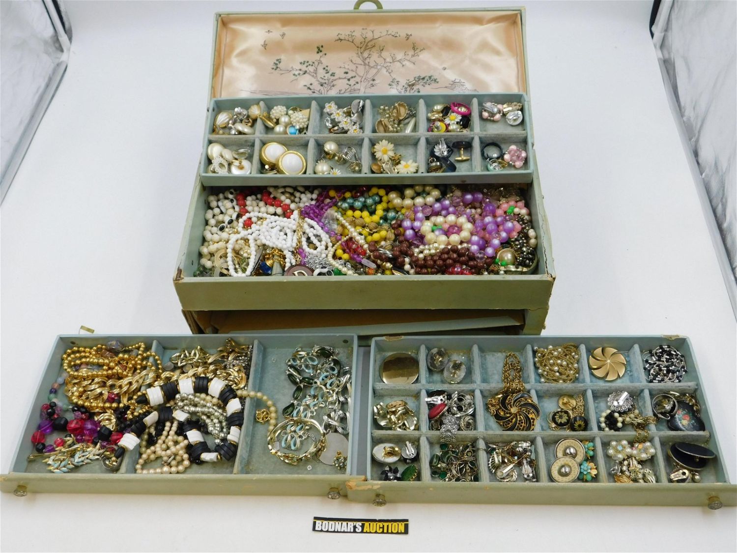 Large Jewelry Box full of Costume Jewelry. Many Plastic Beads, Faux Pearls, Earrings and More. Some pieces missing stones. This sale will be broadcast live on sale day with full descriptions of each lot being sold. All items MUST be paid for within 24 HOURS of the sale. Anyone who has not paid within 24 hours will have a dispute opened against them and will not be able to bid at future sales. All items in this sale are local pick up only, or shipping via UPS store in Kendall Park, NJ.. If you need your items shipped, we will send your items to the UPS store in Kendall Park, NJ . They will pack it and ship it to you and you will pay them separately and directly. Please call them to get a quote before bidding. Their phone number is 732-422-7242. If you are picking your items up you must contact us NO LATER than 24 hours after the sale to schedule an appointment to pick up. Pick up dates are Thursday, Friday, Saturday, and Monday ONLY, and are BY APPOINTMENT ONLY!! After Monday, if you have not picked up your items, they will be disposed of.