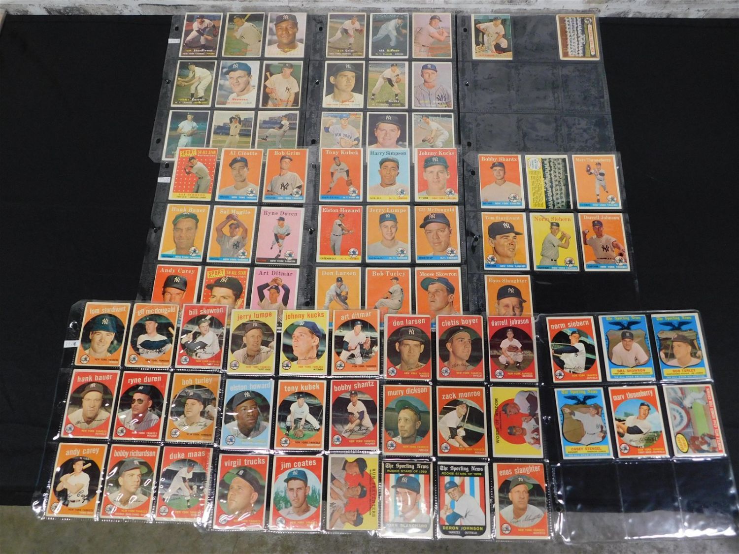 Lot of 1957, 1958 and 1959 Topps New York Yankees Baseball Cards including (20) from 1957, (25) from 1958 and (33) from 1959. Some players included are Elston Howard, Don Larson, Art Ditmar, Bob Turley, Harry Simpson, John Blanchard, Mantle Baseball Thrills and More. Moose Skowron is Autographed. Conditions vary on cards. All items are shipped USPS or UPS and will be billed separately. A $10 handling fee is added to the shipping price per lot. Local pickups are in our South Brunswick location on Friday, Saturday and Monday ONLY! All pickups are by appointment only. Any condition issues will be listed in the description. Please read the terms for full information.