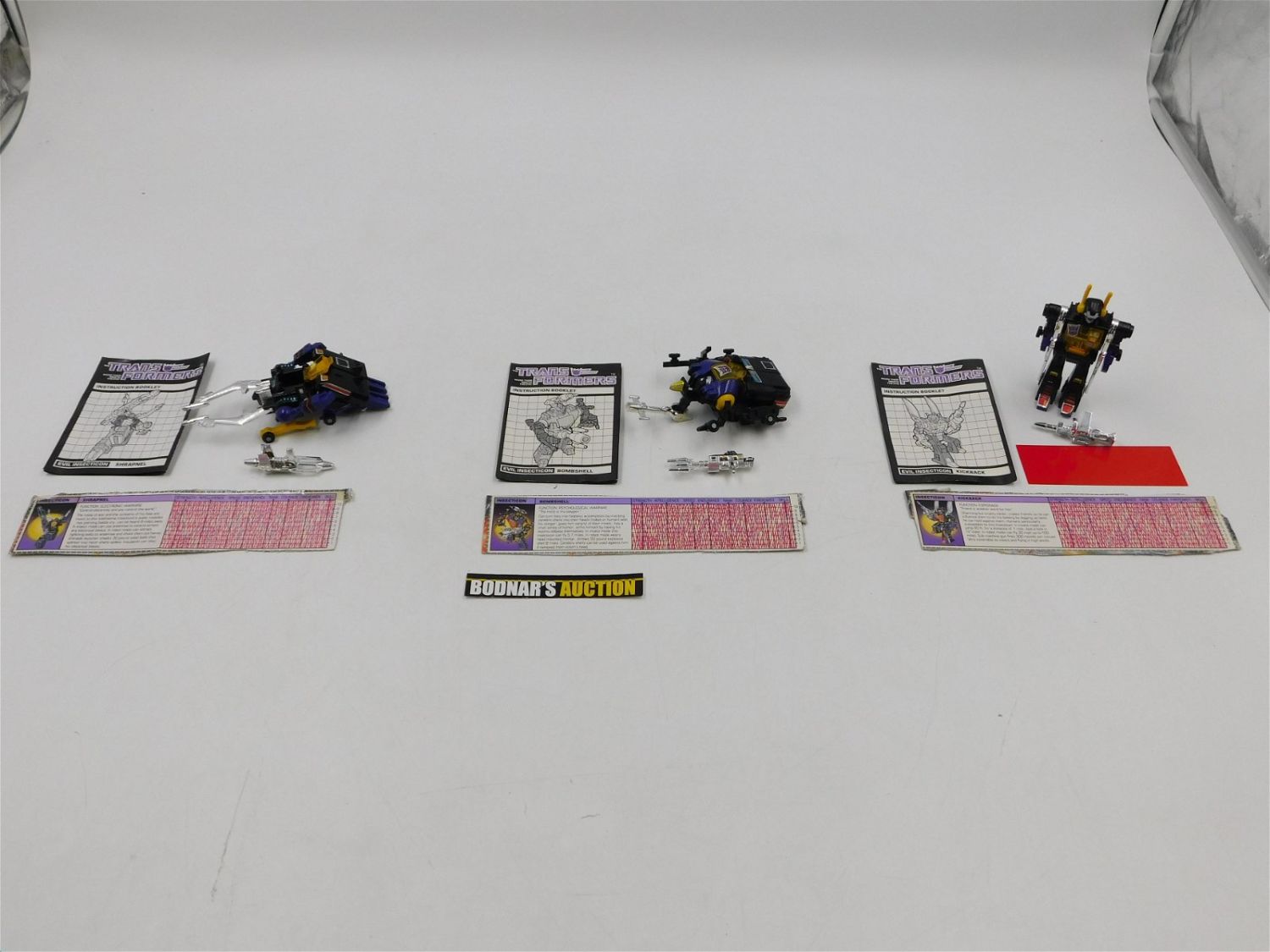 Lot of G1 Insection Transformers 1983 including Kickback, Shrapnel, and Bombshell – Complete. All items are shipped USPS or UPS and will be billed separately. A $10 handling fee is added to the shipping price per lot. Local pickups are in our South Brunswick location on Friday, Saturday and Monday ONLY! All pickups are by appointment only. Any condition issues will be listed in the description. Please read the terms for full information.