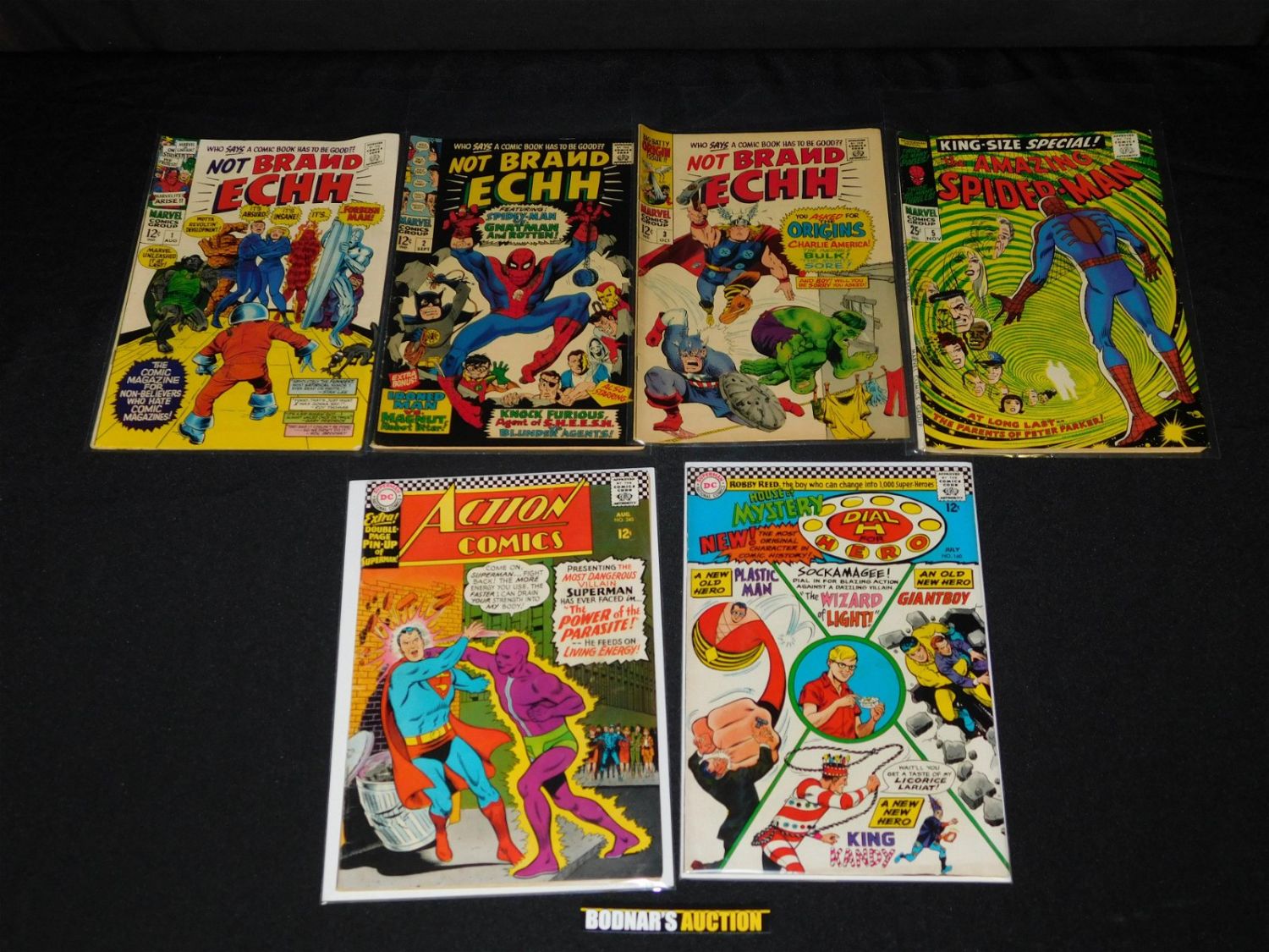 Lot of 7 Marvel and DC Comics including King Size Amazing Spider-Man#5, Action Comics #340, House of Mystery #160, and Not Brand Etch #1-3. Action Comics #340 has centerfold firmly attached. Please read the terms and conditions. This sale will be broadcast live on sale day with full descriptions of each lot being sold. All items MUST be paid for within 24 HOURS of the sale. Anyone who has not paid within 24 hours will have a dispute opened against them and will not be able to bid at future sales. All items in this sale are local pick up only, or shipping via UPS store in Kendall Park, NJ.. If you need your items shipped, we will send your items to the UPS store in Kendall Park, NJ . They will pack it and ship it to you and you will pay them separately and directly. Please call them to get a quote before bidding. Their phone number is 732-422-7242. If you are picking your items up you must contact us NO LATER than 24 hours after the sale to schedule an appointment to pick up. Pick up dates are Thursday, Friday, Saturday, and Monday ONLY, and are BY APPOINTMENT ONLY!! After Monday, if you have not picked up your items, they will be disposed of.